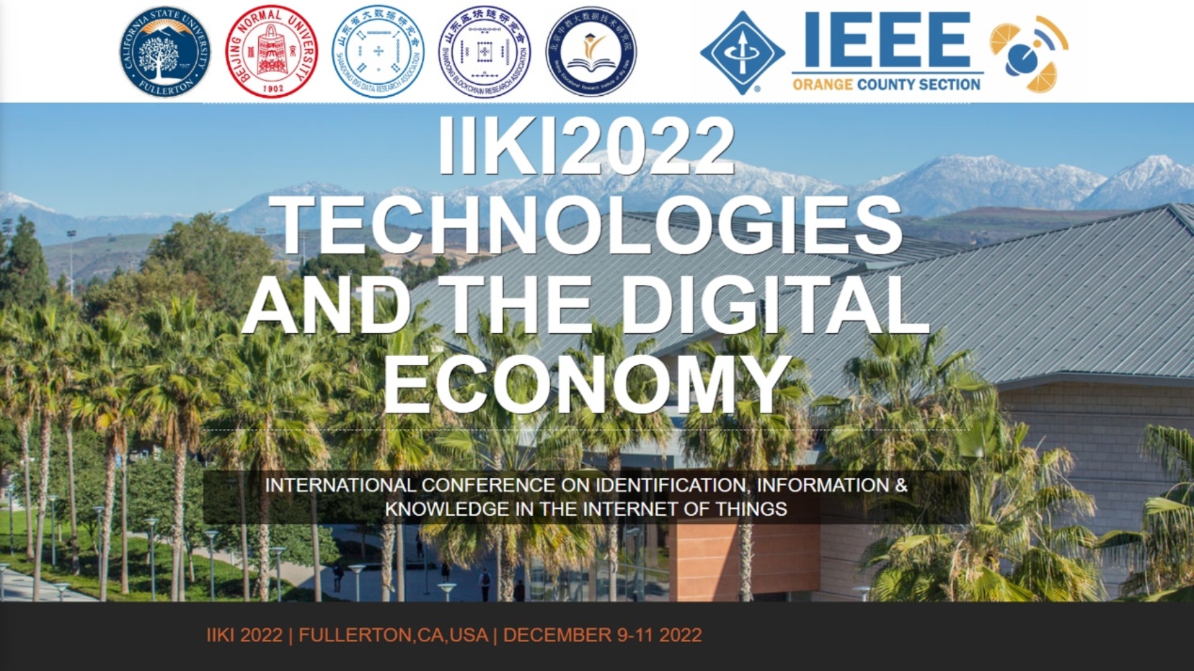 12月9日至11日,由加州州立大学富尔顿分校(California State University, Fullerton)、山东省大数据研究会、山东大学联合主办,潮人论坛 、北京中教大数据技术研究院和山东区块链研究会协办的第十一届物联网标识、信息与知识国际会议(IIKI2022)以线上会议的模式顺利举行。会议全程由山东省大数据研究会官方微信视频号“数据山东”同步直播。会议主题重点突出信息技术与数字经济两个版块,其中技术板块延续历届会议的相关分会,数字经济版块凸显数字经济与金融科技的主题,设立6个与之相关的分会。