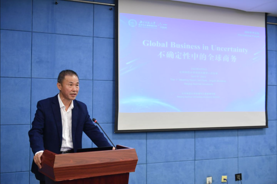 The international forum on "Global Business in Uncertainty" hosted by BNUBS was held in JIINGSHI HOTEL on April 9, 2023.