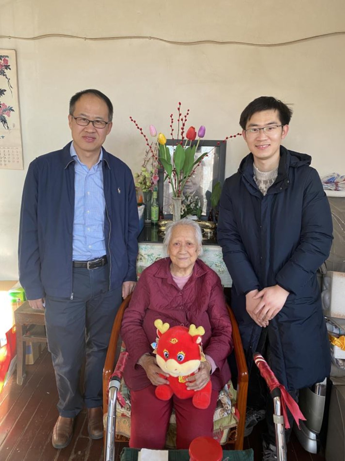 Dean Qi Yudong, Party Secretary Sun Zhijun and other school leaders came to the home of Cheng Shuli, Zhan Junzhong, Wang Shanmai, Shen Yue, Peng Yanguang, Zheng Peiquan, Teng Xianjian, Deng Jinwen, Xing Wenying, Wu Lan and other retired school leaders and teachers, as well as Mr. Tao Dayong's widow, Mrs. Niu Pingqing, and Professor Wang Tongxun's widow, Mrs. Liu Qiutong. They asked the old teachers about their daily lives and physical conditions in detail, introduced the latest achievements made by the School in party building, personnel training, scientific research and discipline construction, and also expected the old teachers to continue to offer suggestions for the construction and development of the School.