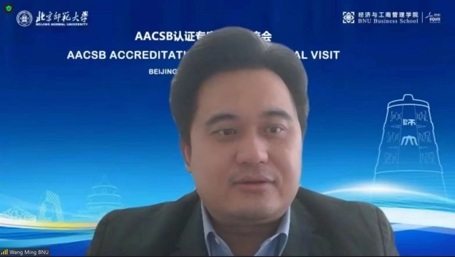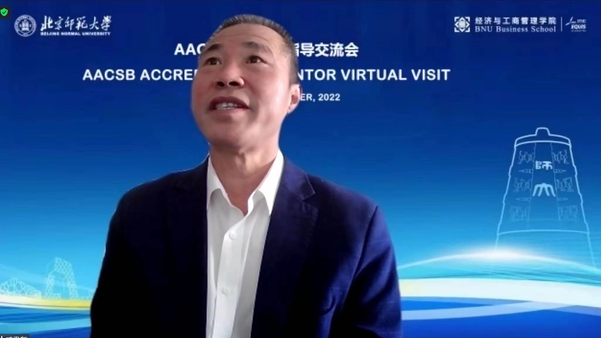 Prof. Wang Ming, Assistant to the principal, expressed his welcome and thanks to Dean Amy Z. Zeng on behalf of BNU. He briefly introduced the 120-year development history and the current school-running orientation of the university, focusing on the Global Development Strategic Plan (2020-2025). Wang pointed out that the CPC's 20th National Congress made clear plans for China's high-level opening-up, which provided strong spiritual motivation and policy guarantee for the university's goal of building a world-class university and its global development strategy. As one of the internationally recognized accreditation systems for business schools, the AACSB accreditation enjoys a global reputation. The University strongly supports BNUBS to pass the international accreditation, share and exchange advanced educational ideas and methods with international counterparts, promote construction with certification, further improve the university's quality and international influence and make new contributions to the “Double First-Class construction of BNU and the implementation of the global development strategy.