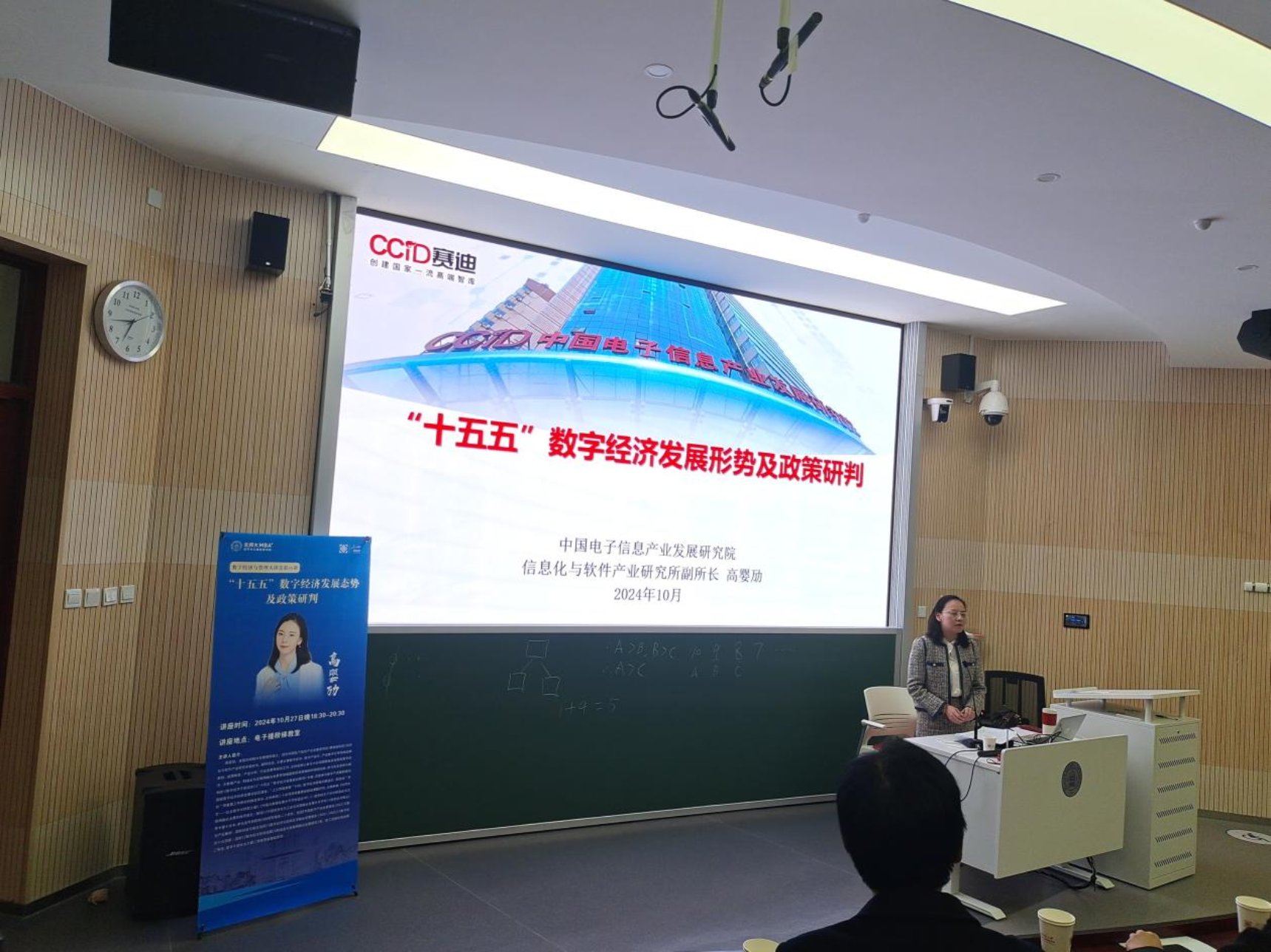 On the evening of October 27, 2024, the 35th lecture of the "Digital Economy and Management Lecture Hall" of BNUBS, titled "Analysis of the Development Trends and Policies of the Digital Economy in the 15th Five Year Plan", was held in the lecture hall of the Electronic Building.This lecture specially invited Gao Yingmai, Associate Director of the Institute of Information Technology and Software Industry at China Electronics Information Industry Development Research Institute (CCID Research Institute), to give a lecture. Zhou Jianghua, Director of the MBA Education Center at BNUBS, presided over the lecture. Li Jing, Associate Director of the MBA Education Center, and more than 150 undergraduate, master's, and doctoral students from the school attended the lecture.