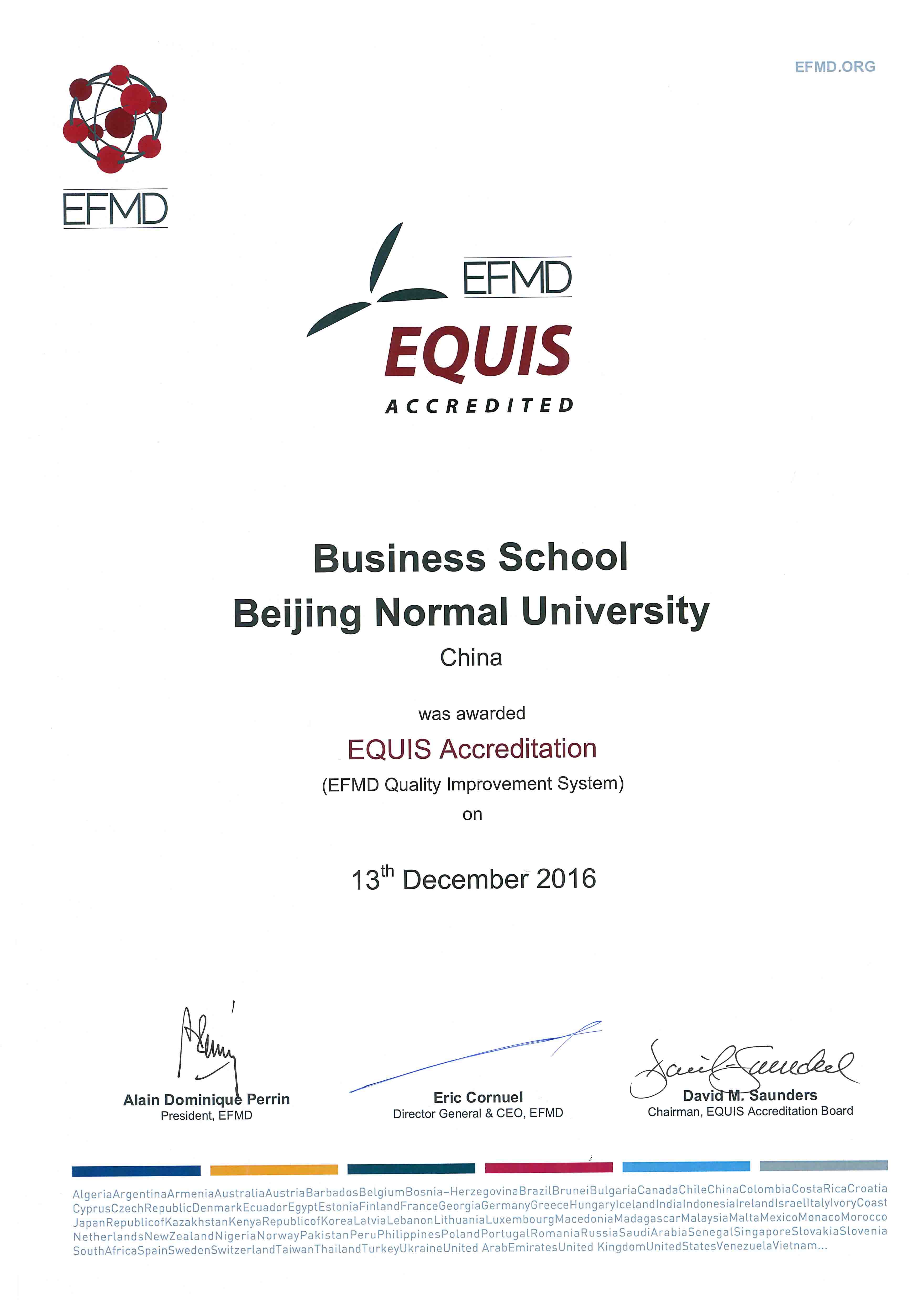 Under the support and help of the school leaders and various departments, by staying closely with college students, faculties, alumnus, partners and members from the community, with their long-term supports and continuous efforts, BNUBS had finally passed the EQUIS international accreditation in December 2016. BNUBS became the seventeenth business school in China mainland that have passed the EQUIS accreditation, ranking in the world’s top 1% best business school club. The award of EQUIS international accreditation has laid a good foundation for the school’s further development.