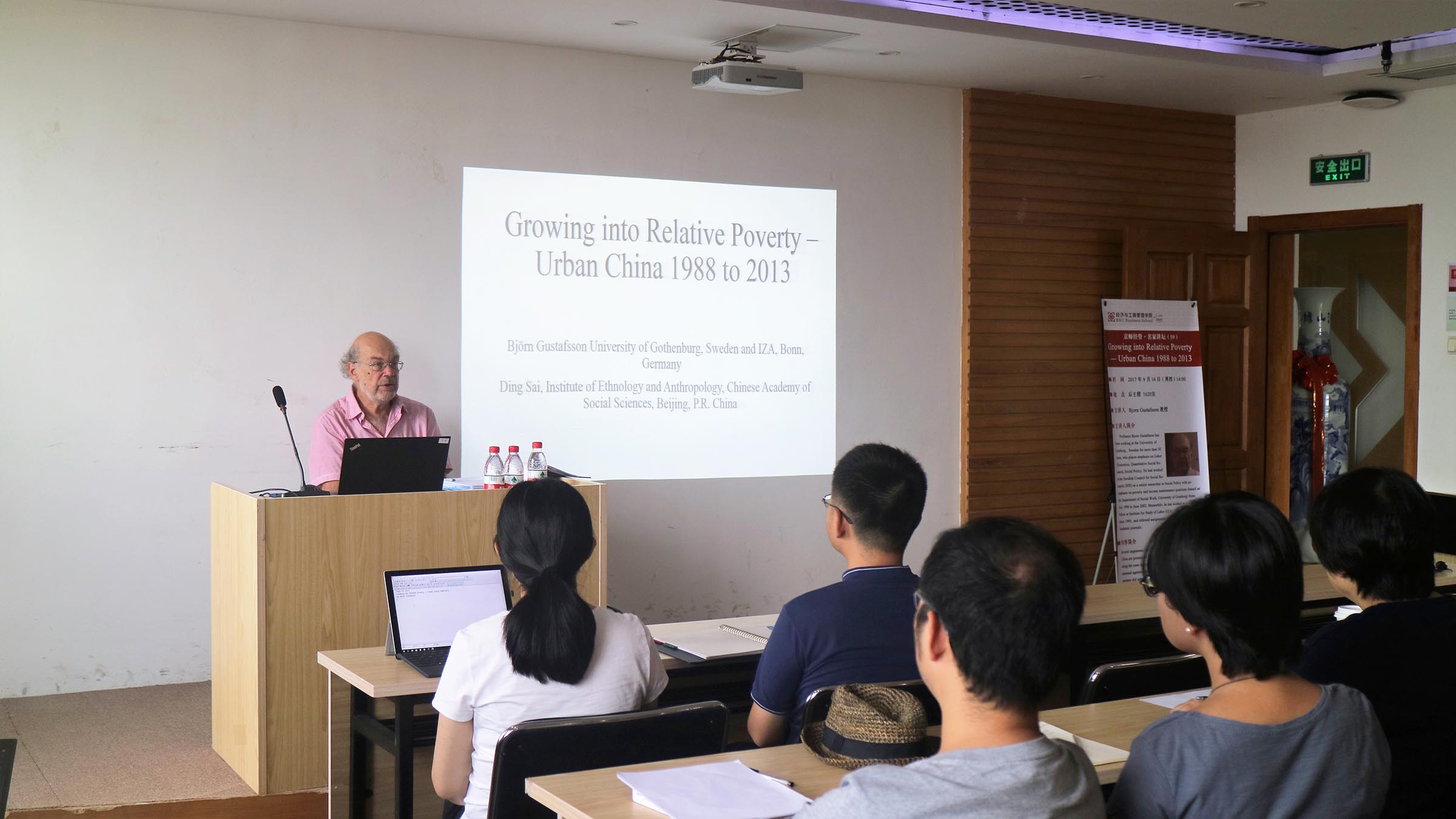 On the afternoon of 14th September 2017, the 59th Jingshi Business Celebrity Forum was successfully held at library building. Prof. Bjorn Gustafsson from University of Gothenburg in Sweden was invited to the forum. He presented a speech on the topic of “Growing into Relative Poverty——Urban China 1988 to 2013”.