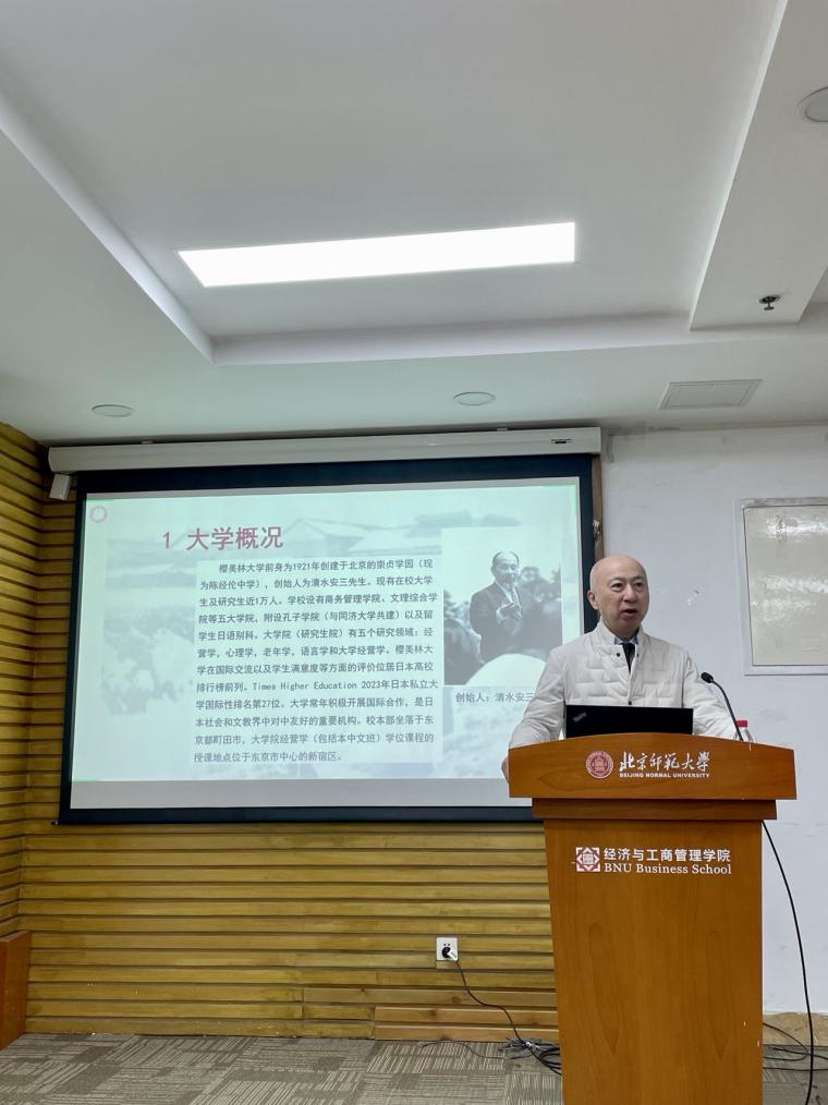 Dean Qi extended a warm welcome to Dean Lei's visit. Dean Qi reviewed the deep history of cooperation between the two sides, and said that BNUBS has been committed to international education, and the establishment of the Tokyo OberlinCenter of BNUBS has laid a solid foundation for the cooperation between the two sides. He hoped that through cooperation, we can provide students with a broader learning and development platform.