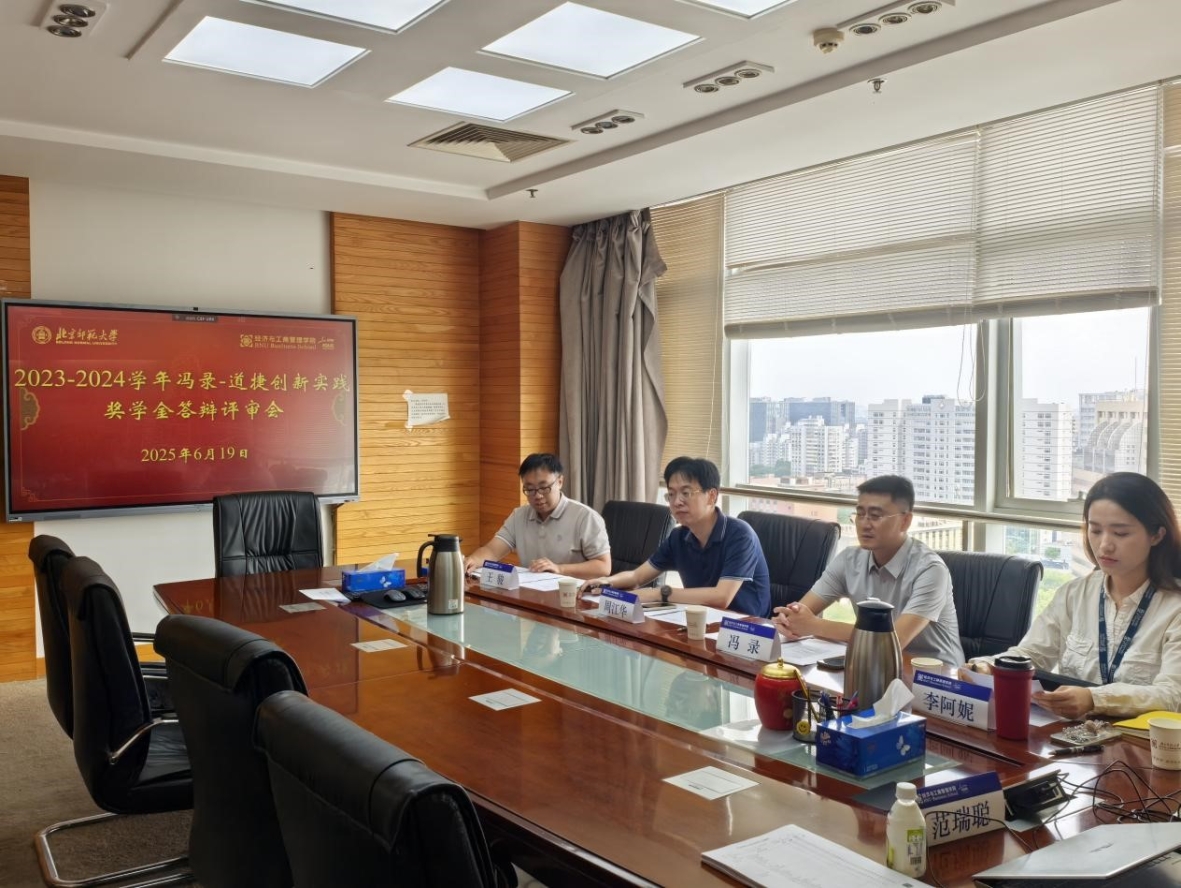 On June 19, 2025,BNUBS held the 2023 - 2024 Academic Year Feng Lu - Daojie Innovation and Practice Scholarship Evaluation Meeting in Conference Room 1610 of the Houzhu Building. Alumni donor Feng Lu, Professor Zhou Jianghua, Assistant Dean of the School and Director of the MBA Education Center, full - time counselor Wang Jun, alumni work supervisor Li Ani, and teachers related to student work participated in this evaluation meeting.