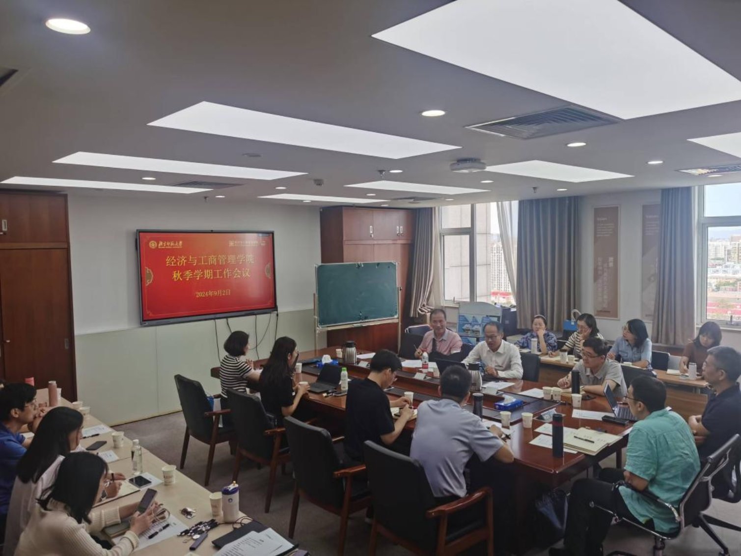 On the morning of September 2, 2024, BNUBS held a new semester work meeting at 1722 in the Rear Main Building. At the meeting, the spirit of the School's summer cadre meeting was conveyed and studied, and the key work of this semester was discussed and deployed. School Party Committee and government team members, department heads, party branch secretaries, heads of internal institutions attended the meeting. The meeting was chaired by Dean Qi Yudong.