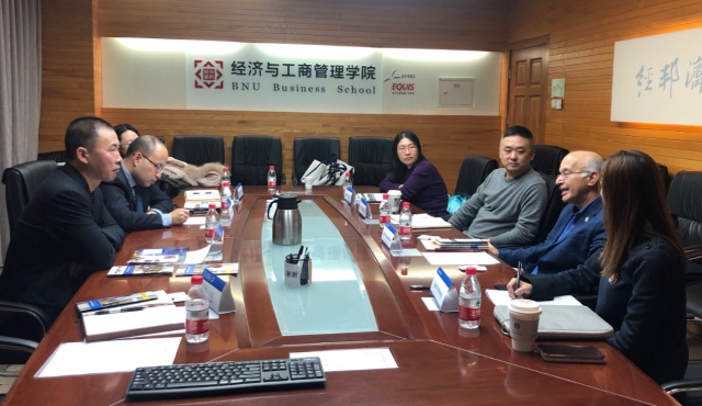 Dean Qi welcomed Dean Deolalikar and his delegation, introduced BNU and BNUBS briefly, and emphasize the international strategy of BNUBS and the existing global reach. Dean Deolalikar introduced the UC system and the UC Riverside, and detailed the short-term training programs in economic policy and fiscal policy, as well as the master programs of School of Public Policy. The two sides exchanged views on topics like short term/long term programs, faculty and students visits.