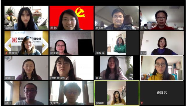 The economics branch of teaching staff,the business administration branch of teaching staff and the accounting branch of teaching staff held a discussion on the theme of problems and improvement strategies in teaching and education during novel coronavirus pneumonia. Under the condition of the outbreak causes students cannot back to school on time, the teacher party members respond to the call of the Ministry of Education and BNU-- classes suspended but study kept, take part in the teaching training, fully prepared to teaching, choose the Changjiang· RainClassroom, ZOOM tools for online teaching platform and Tencent conferences, etc. according to the requirements of the course, students' characteristics and their own actual situation. Teachers generally believe that online teaching can be regarded as an effective form of teaching in this special period, which overcomes the time and space barriers of teaching, stimulates students' enthusiasm for interaction, and helps students to consolidate and review after class. However, according to the actual experience, some teachers put forward the problems in online teaching and the improvement strategies. For example, some teachers suggested that the combination of video recording and WeChat group online discussion could be adopted in order to solve the problem of time difference in international students' courses and the phenomenon of frequent lag in live video broadcasting. Some put forward that since the way to test is a difficult problem, they can try to use a limited time open-book test and other forms. Some suggested that online teaching might not be conducive to effective learning for students from developing countries with poor electricity and network conditions, students from poor and backward areas in China, and students from poor families.