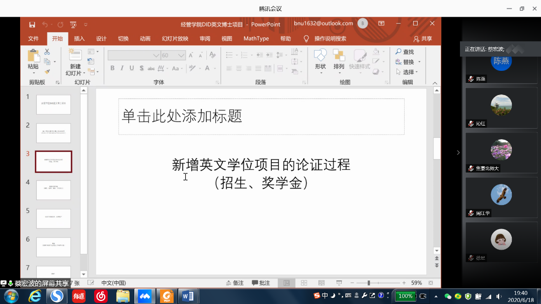 On the evening of June 18, 2020, BNUBS organized the Symposium on English Taught Ph.D Program in  Business Management. Associate dean Zhang Pingdan, Cai Hongbo, dean of Accounting Department Wu Qinhong, dean of Human Resource Management Department Chen Yan, dean of Strategic Management Department Jiao Hao, as well as Hao Ying, Tong Luqiong, Zhou Jianghua, Xu Zhixing and Xu Xing attended the Symposium online.