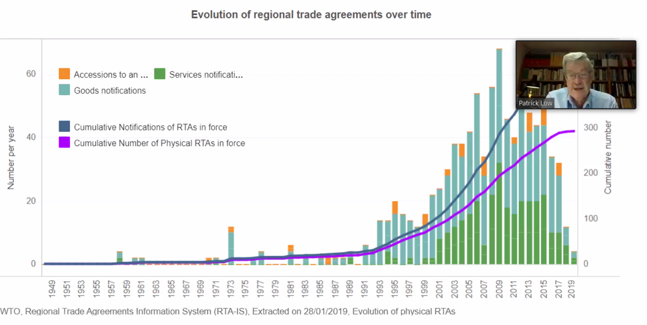 Professor Patrick Low, former chief economist of WTO, systematically discussed the reasons and necessity of establishing preferential trade agreements from three aspects: the nature of trade policies, the limitations of WTO and political factors.