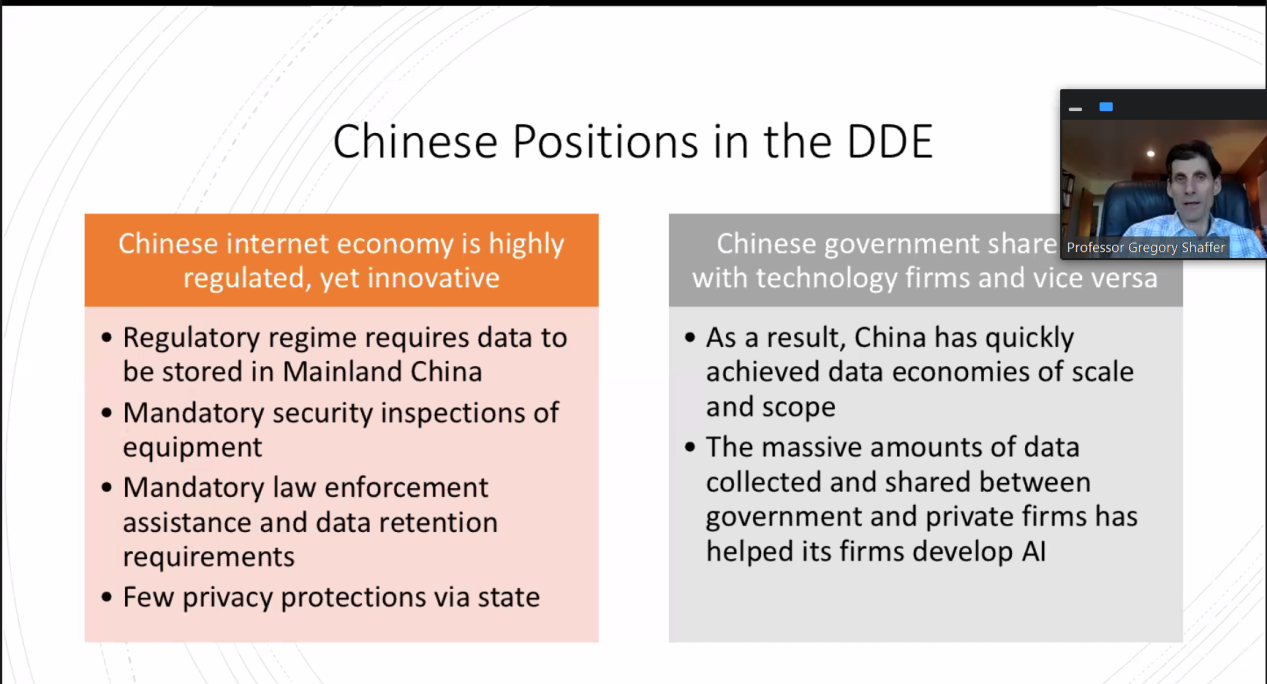 Gregory Shaffer, professor at the University of California, Irvine, elaborated on the challenges of the digital economy in the legal context, in particular the boundary of the definition of trade in goods and services, as well as the different legal rules governing the flow of data in different countries. Therefore, Professor Shaffer also describes the work of WTO members in regulating digital trade and the efforts of the major economies themselves.
