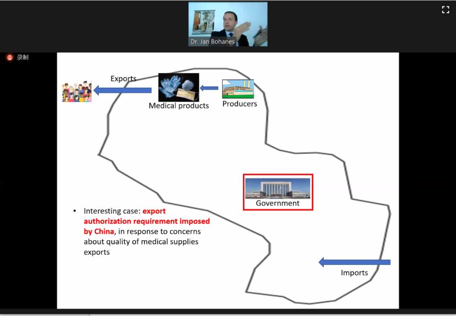 Dr. Jan Bohanes, senior consultant of Advisory Center on WTO Law(ACWL), explained a series of import and export intervention and subsidy measures taken by member countries after the COVID-19 outbreak, as well as the application of relevant WTO rules.