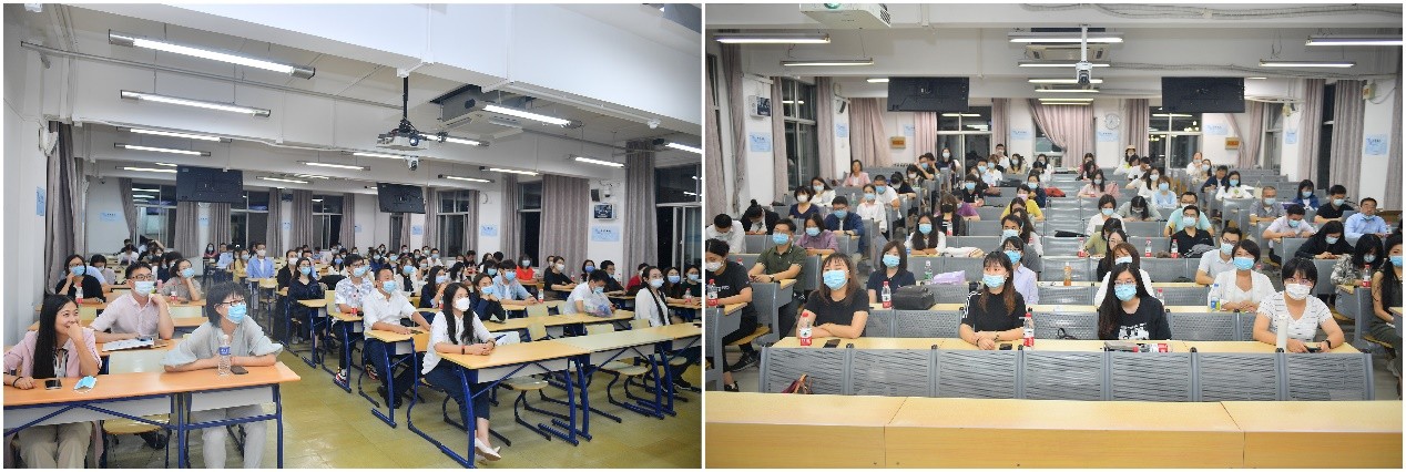 On September 11th, 2020, at 7:00 PM, the opening ceremony of MBA freshmen of BNUBS was held in Room 101 of the No.2 Teaching Building. More than 300 faculty members and students participated in the ceremony, including Qi Yudong, Dean of BNUBS; Sun Zhijun, Chairperson of the Party Committee of BNUBS; Ge Yuliang, Deputy Chairperson of the Party Committee of BNUBS; Zhang Pingdan, Associate Dean of BNUBS; Cai Hongbo, Associate Dean of BNUBS; special guest: Cai Lei, Vice President of Jingdong Group; teachers’ representative Gao Minghua; Sun Chuan, Director of MBA Education Center; Zhou Jianghua, Deputy Director of MBA Education Center; Li Jing, Deputy Director of MBA Education Center; Wang Lulu, Deputy Director of MBA Education Center; the head teachers’ representative Zhu Yanchun, Wang Jun; teacher Su Xiaoyuan, Tian Lu, Chen Xiaojuan, Zhang Li, Yu Chen, Huo Qihong of MBA Education Center; MBA 2019 student representatives and all freshmen of Class of 2020. The ceremony was presided over by Zhang Pingdan, Associate Dean of BNUBS. According to the requirements of epidemic prevention, there were also two other sub-venues, which were Room 108 and Room 312 of the No.2 Teaching Building.