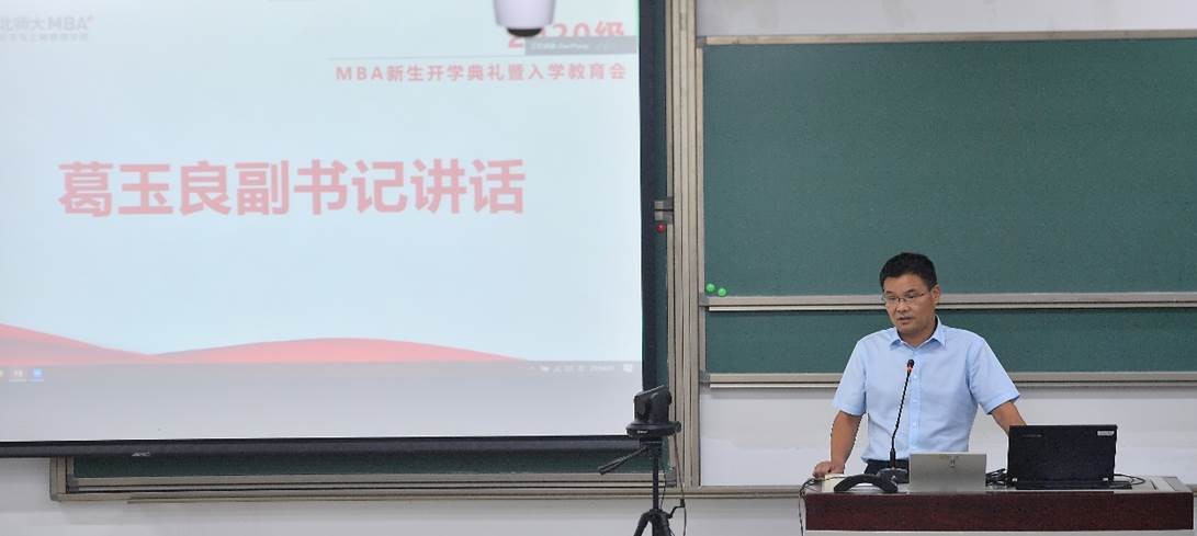 In the second half of the opening ceremony, Ge Yuliang, Deputy Chairperson of the Party Committee of BNUBS; Sun Chuan, Director of MBA Education Center, and Li Jing, Deputy Director of MBA Education Center, respectively introduced the school's student work, MBA teaching and training, expectations and requirements of MBA Education Center, and gave comprehensive guidance to students of Grade 2020 in their future learning process.Zhou Jianghua, Vice Director presided over the second half of the ceremony.