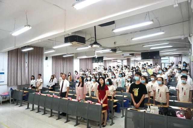 At 2:00 PM on September 11th, the matriculation ceremony of Class 2020 freshmen of BNUBS was held in Classroom 101, N0.2 Building. Participated in the meeting were Qi Yudong, Dean of BNUBS; Sun Zhijun, Chairperson of the Party Committee of BNUBS;Ge Yuliang, Deputy Chairperson of the Party Committee of BNUBS; Zhang Pingdan, Associate Dean of BNUBS; Cai Hongbo, Associate Dean of BNUBS; teacher’s representative Wu Qinhong, Jiang Jie; head teachers’ representatives Han Lili, Yu Jiajie, Cai Zijun, Chang Xinyang and Lan Rujia; Li Yingshu, Director of Postgraduate educational administration; Xu Xing, Director of undergraduate educational administration; Wang Jun, Chen Su, Party Committee of BNUBS; representative of undergraduate students in 2016; representative of graduate students in 2017 and all freshmen of class 2020. According to the requirements of epidemic prevention, there are two sub-venues, Classroom 108 and Room 312, No.2 Building. About 260 students and teachers attended the ceremony.