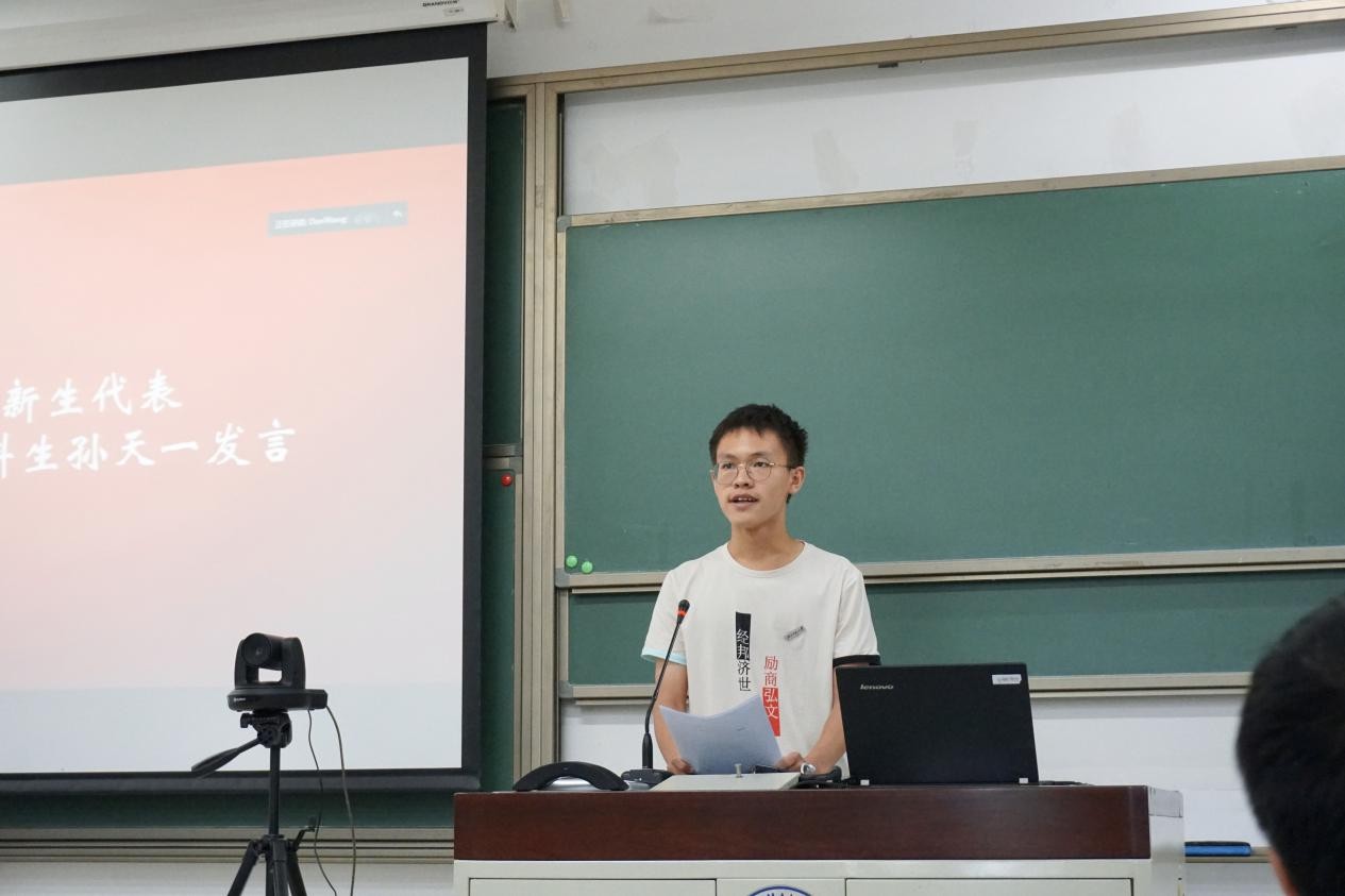 Sun Tianyi gave a speech as the representative of undergraduate freshmen