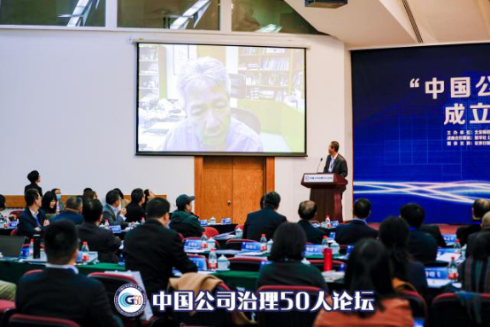 Chen Yuan, the Vice Chairman of 12th CPPCC, made a speech through video. He said the establishment of G50 has great significance, and proposed that the forum should adhere to the problem-oriented approach and carry out pioneering research centering on the modernization of China's corporate governance system and governance capacity based on China's impressive reform practice. He also encouraged the integration of knowledge and practice and the application of knowledge to promote the theoretical research and practical innovation of Corporate governance in China into a new realm.