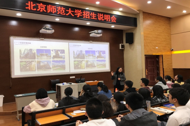 Meanwhile, Jiangxi recruitment Publicity Team of Beijing Normal University went to Nanchang No. 2 Middle School and Jiujiang No. 1 Middle School for a return visit of "high-quality student source base". During the return visit, Ms. Zhang Haiyan introduced the history of BNU, disciplinary characteristics, talent training mechanism and enrollment policy on the spot.