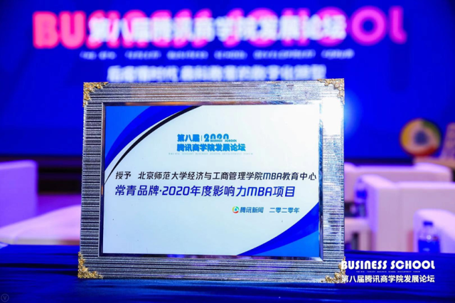 The MBA Education Center of BNUBS was awarded the “Evergreen Brand •2020 Influence MBA Program”
