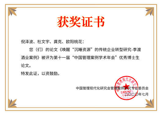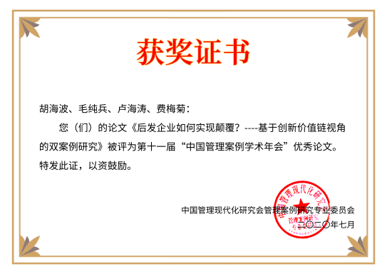 At the closing ceremony, Professor Zhu Fangwei read out the list of "Best Paper" and "Outstanding Doctoral Dissertation" selected in this annual Conference and comments. “How can a Latecomer Achieve Subversion?-- A Dual Case Study Based on the Perspective of Innovation Value Chain“ by Hu Haibo, Mao Chunbing, Lu Haitao and Fei Meiju won the “Best Paper”; “Study on the transformation of traditional enterprises to awaken ‘sleeping resources’ -- Case of Lidu Liquor Industry”by Ni Zebo, Du Wenyu, Gong Ke, and Ouyang Taohua, and “Exploration of the Matching Mode between Product Architecture and Distribution Channels: A Longitudinal Case Study of Yongyou Company”by Xia Mengyuan and Gu Yuanxun won the "Outstanding Doctoral Dissertation".