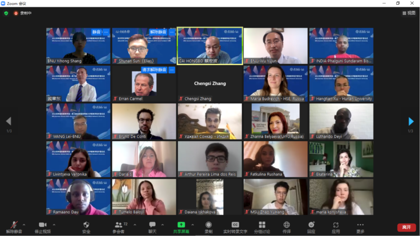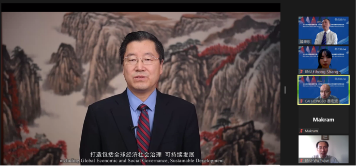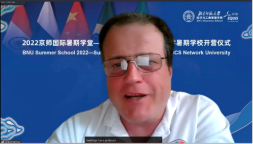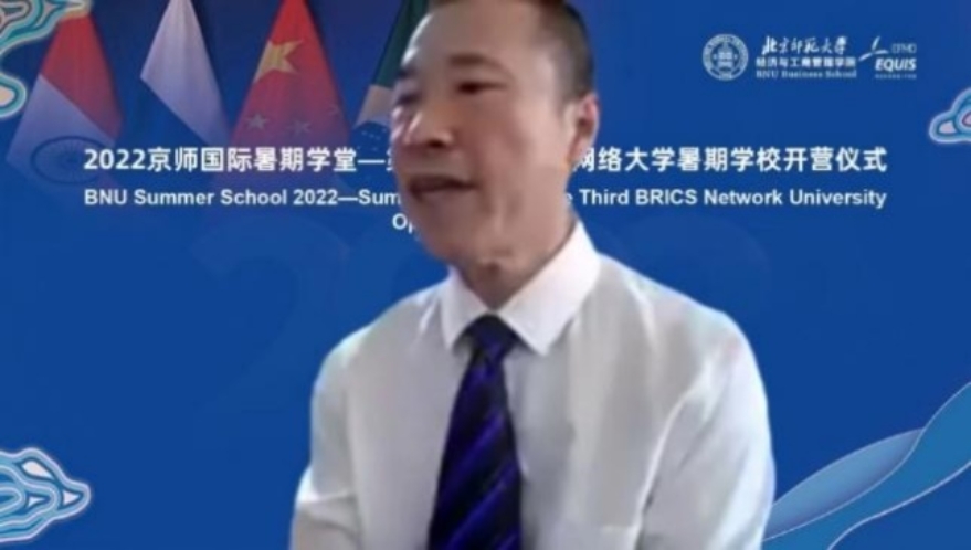 On July 10, 2022, BNU International Summer School -- the third BRICS Network University Summer School was held online. Present at the meeting include Zhou Zuoyu, vice president of Beijing Normal University,Wu Yujun, director of International Exchange and Cooperation Department,QiYudong, Dean of BNUBS,Wang Lei, Director of the BRICS Cooperation Research Center,Erran Camel, former dean of American University's Business School,Zhang Chengsi, Associate Dean of the School of Finance, Renmin University of China,Xu Hangtian, Associate Dean of Hunan University School of Economics and Trade,Mark El-Shagi, director of the Center for Financial Development and Risk Assessment at Henan University, Lin Hua, Adviser to the Rector of Emlyon Business School in Asia,JarkoFidrmuc, Dean of the School of Economics at Zeppelin University in Germany,Maria Budrevich, Deputy director of the Center for International Cooperation at the Russian Higher School of Economics University,Alina Shcherbakova, Director of Iberoamerican, Bruno de Conti, Director of the Confucius Institute at the University of Campinas, Brazil,ZhannaBelyaeva, Director of the Academic Council of the Graduate School of Economics and Management, Federal University of the Urals and 87 students from 13 countries and regions.CaiHongbo, Associate Dean of BNUBS, presided over the ceremony.