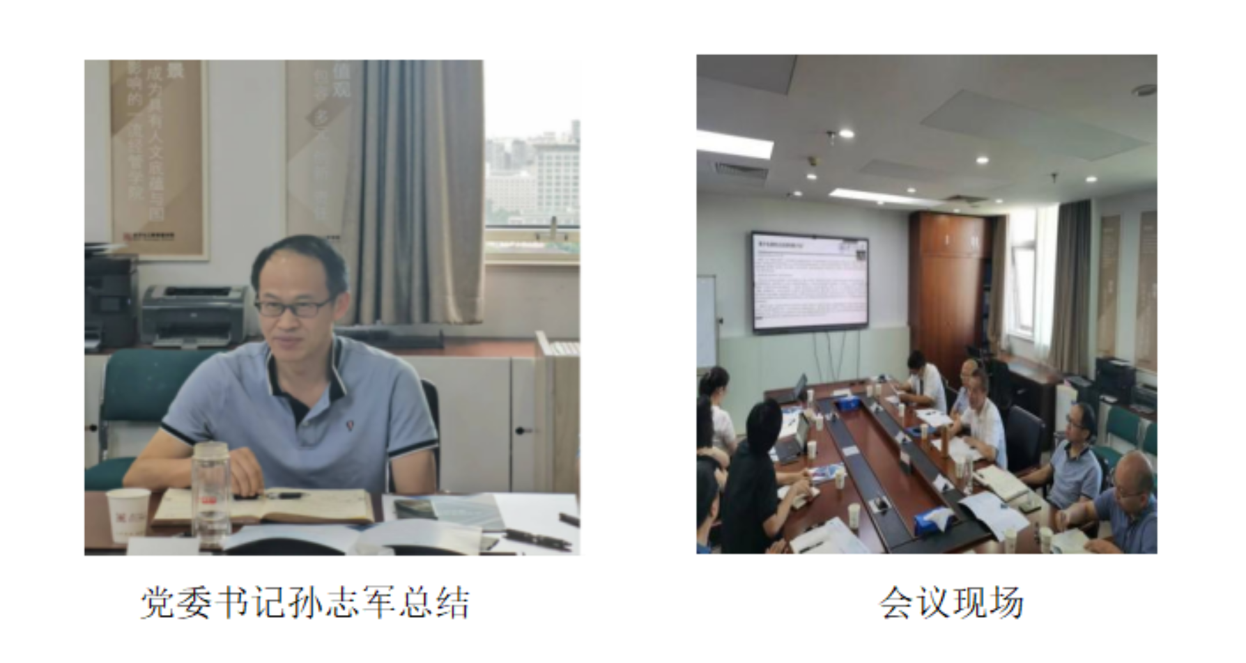 Cui Xuegang, Associate Dean of BNUBS , Qu Ruxiao, Director of the Teaching Committee, Yang Juan, Director of the Economics Department, Wei Hao, Director of the International Economics and Trade Department, Chen Yan, Director of the Human Resources Department, Xu Zhixing, Associate Director of the Department of Human Resources, Li Jing, AssociateDirector of MBA Center, Zhou Jianghua, AssociateDirector of MBA Center and Director of Case Centermade in-depth and detailed exchanges and speeches in the aspects of enrollment, discipline development and characteristic construction, professional personnel training, discipline integration, academic research, teacher transformation, and building of strong disciplines.