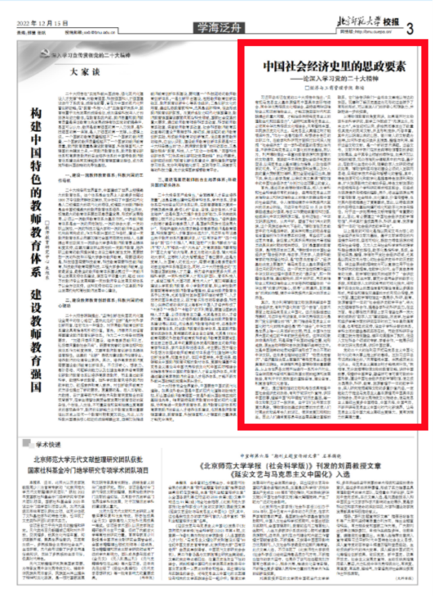 Teachers of our School have published successively signed articles in Economic Research Reference and in the special section of "The Study the Party's Twenty Spiritual Essays by Beijing Normal University Experts and Scholars" :