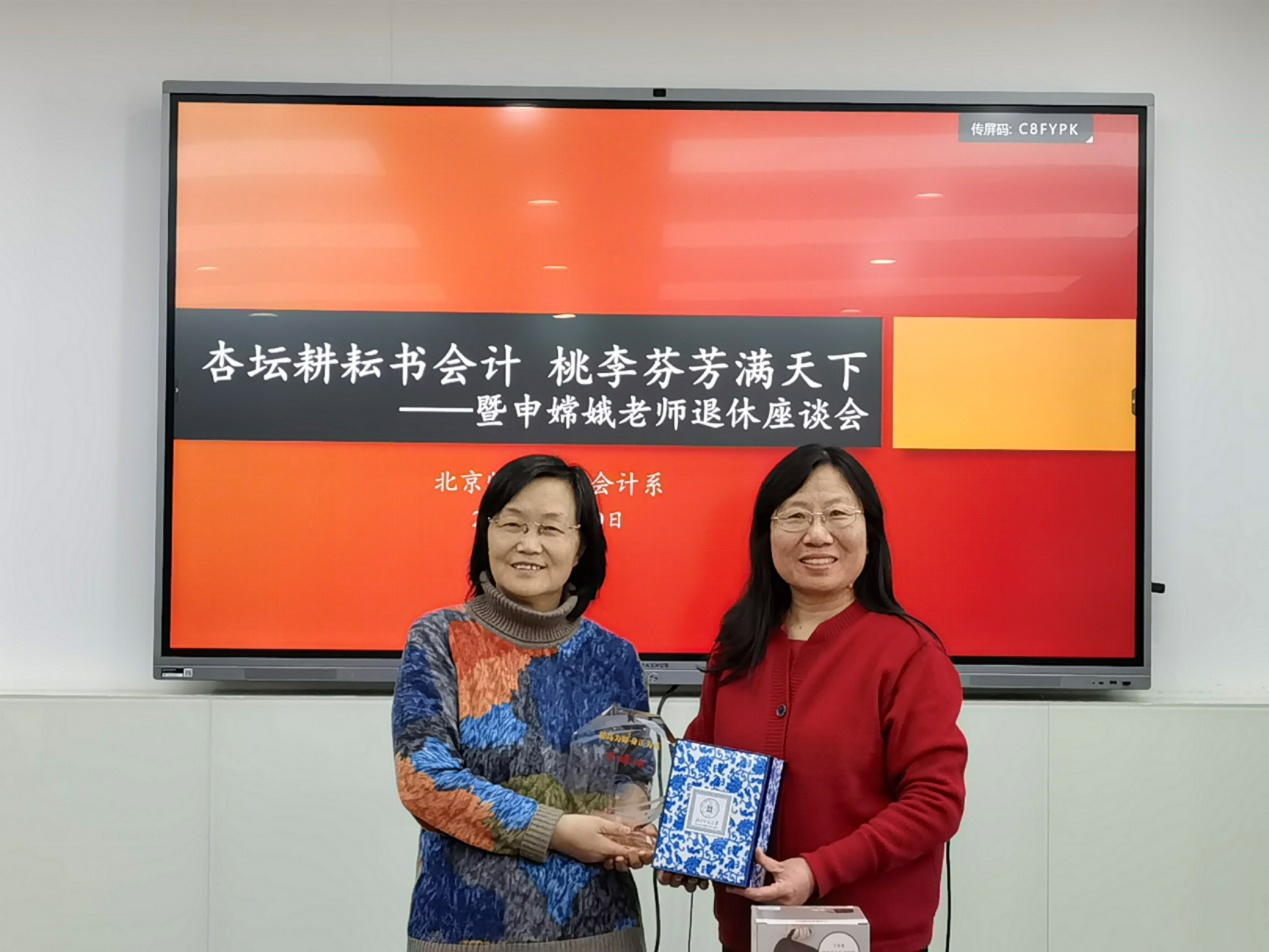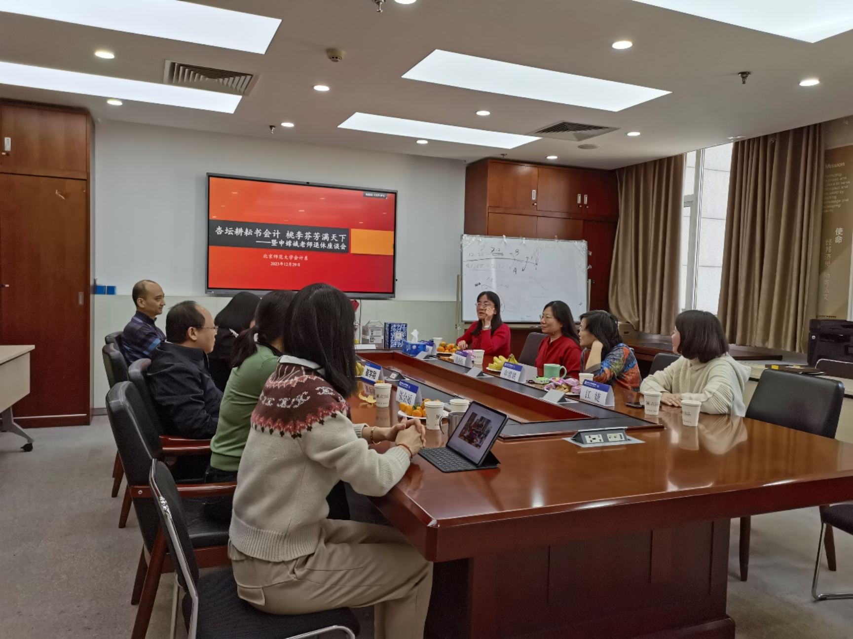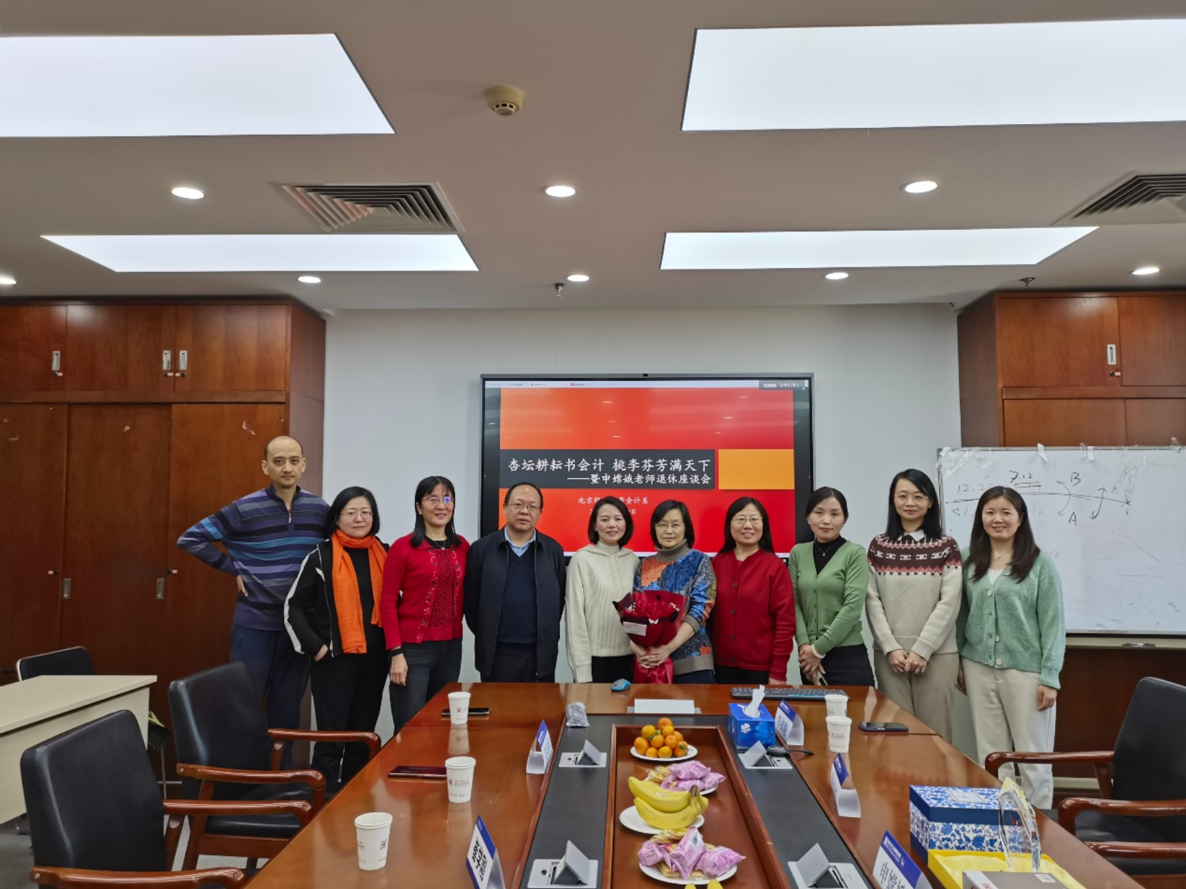 On December 29, 2023, the Department of Accountingheld a symposium with the theme of "Pursuing Excellence for Decades and Cultivating Students for Several Generations" for Teacher Shen Chang 'e's retirement Meeting at Room 1722 of the Rear Back Building. All teachers of the Department of Accounting participated in the event.