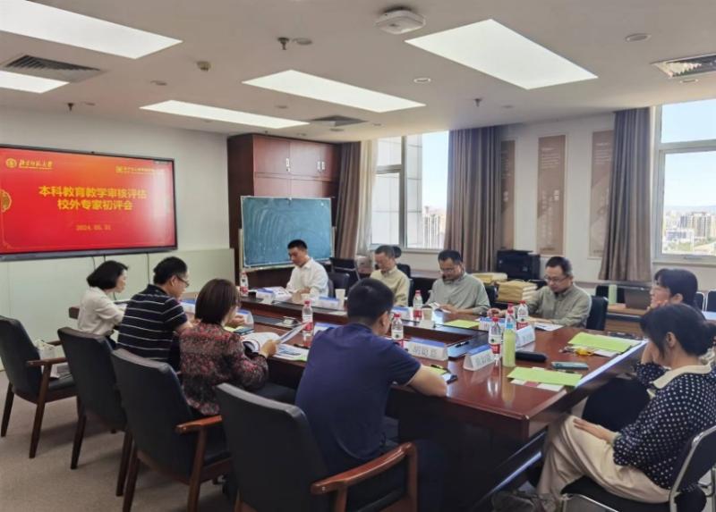 On May 31, 2024, BNUBS launched the preliminary assessment ofundergraduate education teaching audit and evaluation by external experts. The external expert group consists of Professor Ma Li, Associate Dean of Guanghua School of Management, Peking University; Associate Professor Gao Feng, Associate Secretary of the Party Committee of Tsinghua University School of Economics and Management; Professor Sun Wenkai, School of Economics, Renmin University of China; and Professor Cao Qiang, Director of the Audit Department, School of Accounting, Central University of Finance and Economics.Liu Yinan, Associate Director of the Quality Department of the Educational Affairs Department of Beijing Normal University, Sun Zhijun, Party Secretary of the School, Jiang Jie, Associate Dean, Hu Conghui, Associate Dean and teachers from the Teaching Steering Committee and the undergraduate secretaries attended the meeting. The evaluation meeting was chaired by Associate Dean Jiang Jie.