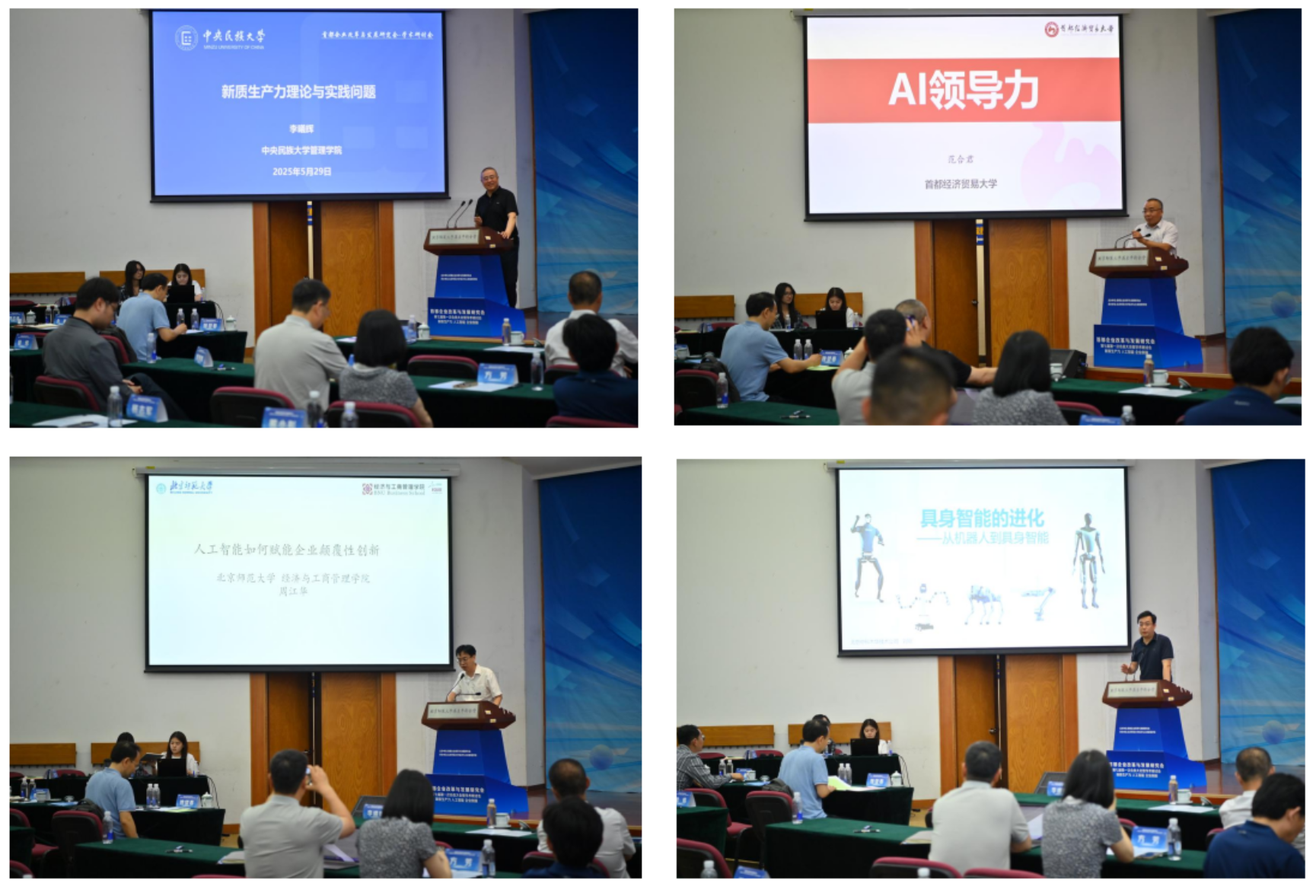 Subsequently, CERDRA held an academic seminar with the theme of "New-type Productivity, Artificial Intelligence and Enterprise Innovation". Qi Yudong, Dean of BNUBS, delivered a keynote speech titled "The In-depth Impact of Digital-Intelligence on Industries", analyzing the current situation and trends of contemporary digital-intelligence development and its impact on China's economic development and employment. Li Xihui, former Dean of the School of Management, Minzu University of China, focused on the theoretical and practical issues of new-type productivity, systematically explaining the connotation, characteristics and development path of new-type productivity. Fan Hejun, Director of the Scientific Research Office of Capital University of Economics and Business, discussed the issues of AI leadership and AI strategy in his speech. Zhou Jianghua, Assistant to the Dean of BNUBS, looked forward to how artificial intelligence empowers enterprise disruptive innovation and shared the practice and prospects of AI technology driving breakthrough innovation. Liu Gang, General Manager of Beijing Zhongke Muhua Software Technology Company, introduced the evolution of embodied intelligence, showing the cutting-edge dynamics and application potential of intelligent technology development.