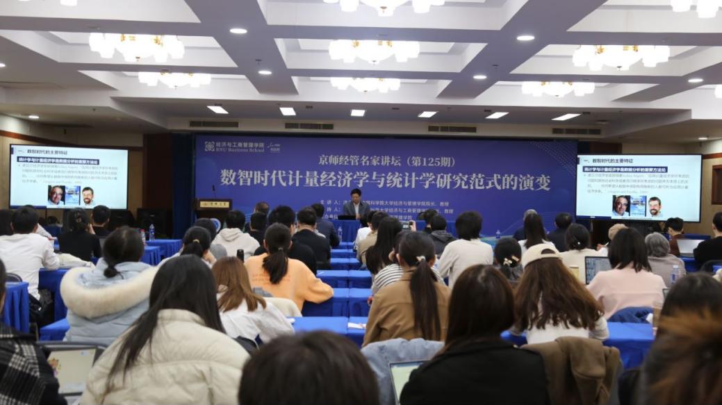 On the afternoon of March 11, 2024, The "Expert Forum" (Session125) was held in the sixth Conference room of Beijing Institute Building. The lecture was delivered by Professor Hong Yongmiao, Dean of the School of Economics and Management of the University of Chinese Academy of Sciences, academician of the Academy of Sciences for Developing Countries and a world-renowned econometrician. More than ten teachers and more than 100 students of BNUBS, including Qi Yudong, Dean of BNUBS; Sun Zhijun, Secretary of the Party Committee of the School participated in the forum. The lecture was presided over by Dean Qi Yudong.