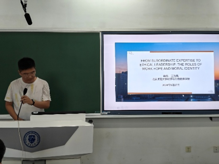 Doctoral student Wang Weifeng's presentation topic is From Subordinate Expertise to Ethical Leadership: The Roles of Work Hope and Moral Identity, which deeply explored how subordinates' professional competence influences leaders' moral leadership behavior through the mediating role of work hope and moral identity.