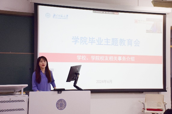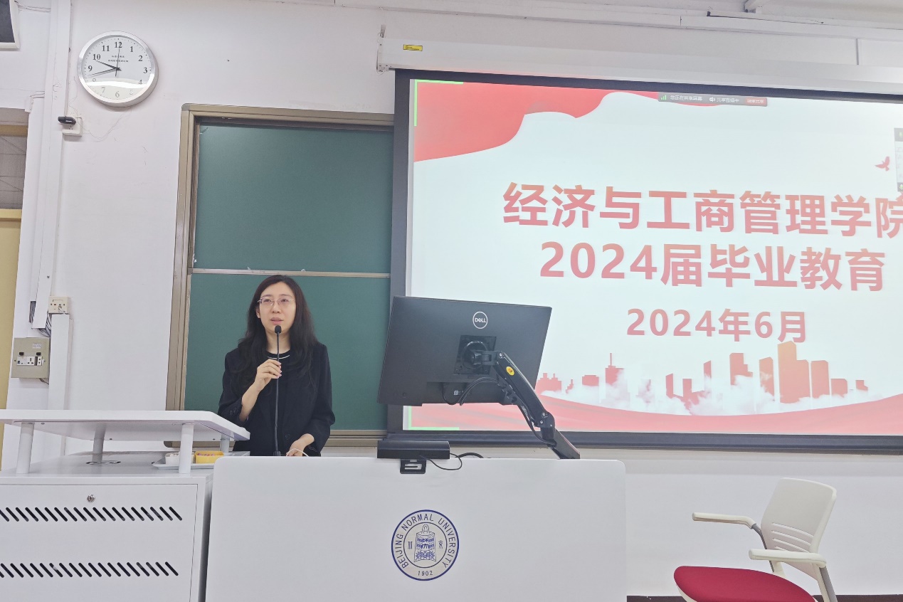 In order to further study and implement the Xi Jinping Thought of Socialism with Chinese Characteristics in the new era, implement the spirit of the 14th Party Congress of the School, and create a healthy, harmonious, proactive, civilized and orderly atmosphere for graduation and leaving the School. BNUBS launched a thematic education activity for graduates on the morning of June 7 in Classroom No. 108. Associate Secretary of Party Committee Han Lili,