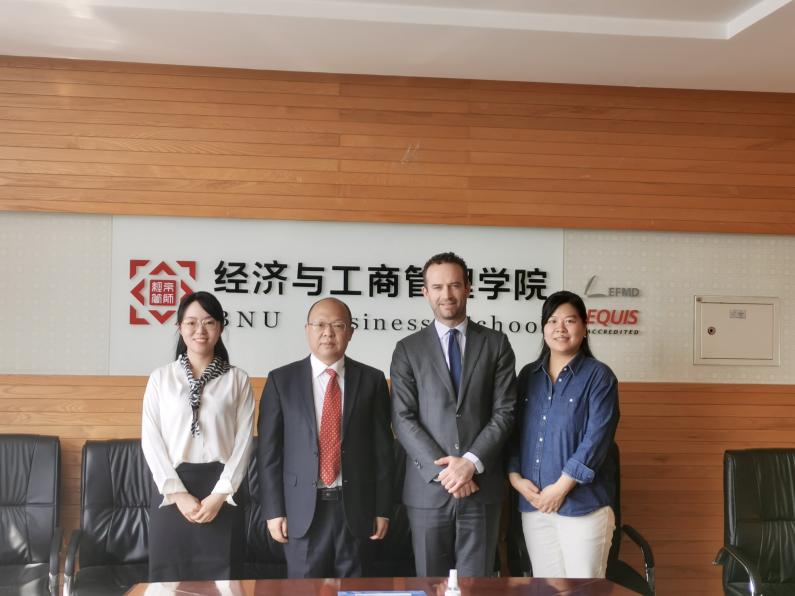 Associate Dean Cui Xuegang welcomed the arrival of President Du and his delegation and introduced the progress of our School in the aspects of students, faculty, scientific research and internationalization in recent years. President Matthieu Dumont expressed his pleasure to visit BNUBS again. He introduced the latest development of SKEMA Business School and hoped to further deepen and expand the cooperation based on the consolidation of the existing cooperation. Subsequently, the two sides have carried out in-depth discussions on the cooperation of short-term MBA programs, updating the existing framework agreement, further promoting the 3+2 bachelor and master double degree programs, 1+1 professional master double degree programs and other aspects.