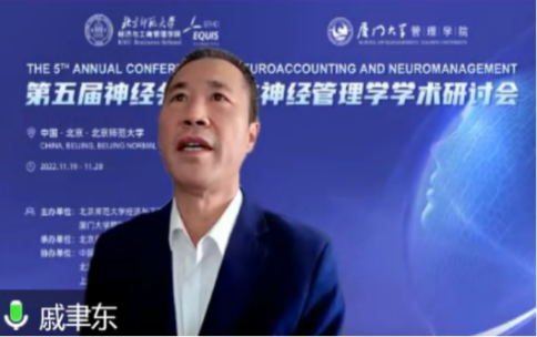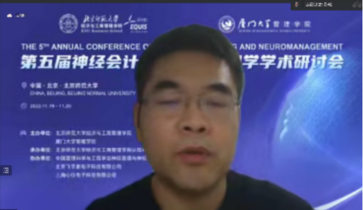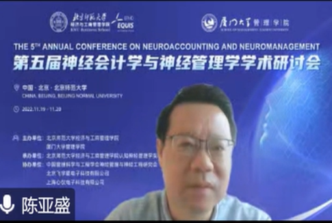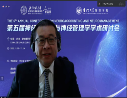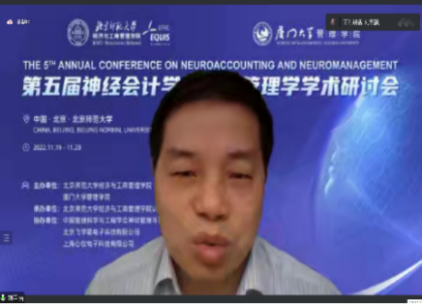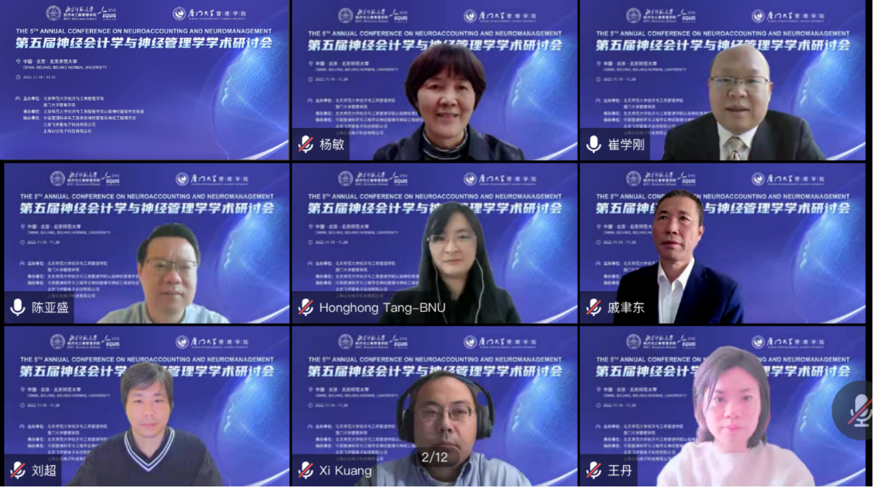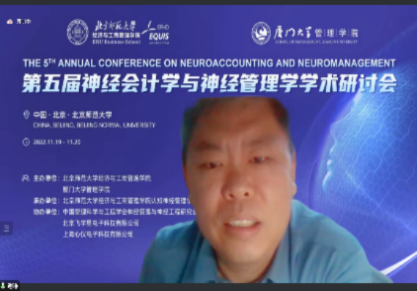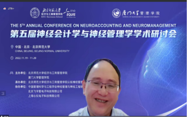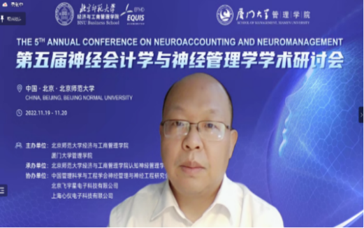 In order to promote the research development and theoretical innovation of neuroaccounting and neuromanagement, the 5th Annual Conference on Neuroaccounting and Neuromanagement was held online from November 19 to 20, 2022. The conference was co-sponsored by BNUBS and School of Management, Xiamen University; organized by Cognitive Neuromanagement Laboratory, BNUBS; supported by Neuromanagement and Neuroengineering Research Institute, Chinese Society for Management Science and Engineering, Beijing Feiyuxing Electronic Technology Co., LTD., and Shanghai Xinyi Electronic Technology Co., LTD. The theme of this symposium is Mission and Theoretical Innovation of Neuroaccounting and Neuromanagement in the Digital Age. More than 100 representatives from more than 20 universities at home and abroad, including Georgia Institute of Technology, University of Sydney, Peking University, Beijing Normal University, Fudan University, Zhejiang University, Xiamen University, Sun Yat-sen University, Shandong University and Shanghai International Studies University, participated in the conference. The number of viewers on the live streaming platform peaked at more than 6000.