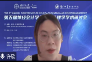 The speakers on the morning of the 19th include Prof. Kuang Xi, Georgia Institute of Technology, USA; Prof. Agnieszka Tymula, University of Sydney, Australia; Prof. Yuzhen Liu, Peking University; Prof. Yu Pan, Shanghai International Studies University; and Prof. Chao Liu, Beijing Normal University. The keynote speeches were hosted by Tang Honghong from Beijing Normal University and Chen Yasheng from Xiamen University. The topic of professor Kuang Xi’s speech was Behavioral Accounting Research in the New Era. He built a theoretical framework of behavioral accounting research, based on which he introduced the latest achievements of behavioral accounting research in the fields of social media, social responsibility, remote work and mobile communication, and predicted the future direction of behavioral accounting research. Professor Agnieszka Tymula from the University of Sydney in Australia made a report titled Gender Differences in Risk Attitudes from the perspective of Neuroeconomics. She introduced the phenomenon that women are more risk averse than men. Through systematic research, she found that the difference in risk attitudes between men and women is due to the actual inequality of women in society. Differences in risk attitudes between men and women could be reduced by increasing equality between men and women in societies or by providing better information. From the perspective theory and psychological accounting, Professor Liu Yuzhen from Peking University introduced the types of behavioral bias and the ways to correct them, as well as the importance of understanding investor decision-making. At the same time, he pointed out the significance of commercialization of behavioral science and the importance of investor education through behavioral finance and neurofinance to achieve common prosperity. The topic of Professor Pan Yu's speech was Exploration and Research on brain-computer collaborative information behavior. He introduced information behavior, the application of neuroscience in information behavior in the context of management science and the research development of brain-computer collaborative information behavior, and expected to use multiple research methods to explain the regular mechanism and scientific paradigm of information behavior in the environment of multiple intelligences in the future. The topic of Professor Liu Chao's speech from Beijing Normal University is Social Navigation: How Spatial Codes Support Navigating in the Abstract Social Space , the latest research results demonstrate that virtual (interpersonal) space navigates in the same neural mechanism as physical space and conceptual space.
