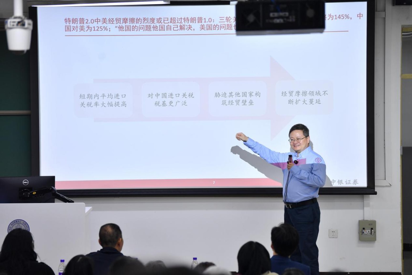On the evening of April 25, 2025, the 62nd session of the Duosheng Lecture Hall of the Alumni Association of Beijing Normal University and the 40th Alumni Forum of BNUBS were successfully held in Classroom 108 of Teaching Building 2. This event specially invited Guan Tao, a 2001 - level Ph.D. alumnus majoring in World Economics from BNUBS, the Global Chief Economist and Managing Director of BOC Securities, as the keynote speaker. With the theme of "Great - Power Rivalry and China's Economic Breakthrough", he analyzed the challenges and opportunities in the economic transformation with vivid data and a global perspective for the teachers and students present.