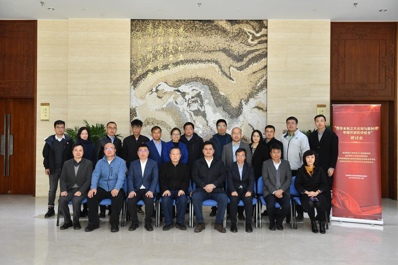 On March 26, 2023, The seminar Once-in-a-Century Great Changes and China's Open Economic Security in the New Era co-sponsored by BNUBS, School of Government of Beijing Normal University, National and Regional Studies Center of Ministry of Education, BRICS Cooperation Research Center of Beijing Normal University, and National Economic Security Research Center of Capital University of Economics and Business was held in Imperial University of Peking of Beijing Normal University. More than 40 experts and scholars from the Chinese Academy of Social Sciences, the Research Center for Xi Jinping’s Economic Thought, the Research Center for Overall National Security, the International Financial and Economic Center of the Ministry of Finance, the China Institutes of Contemporary International Relations, the International Cooperation Department of the China Council for the Promotion of International Trade, Fudan University, the Institute of International Relations, Minzu University of China, the Central University of Finance and Economics, and Guangming Net, International Security Studies, National Security Studies, and China International Television Spanish language channel attended the meeting.
