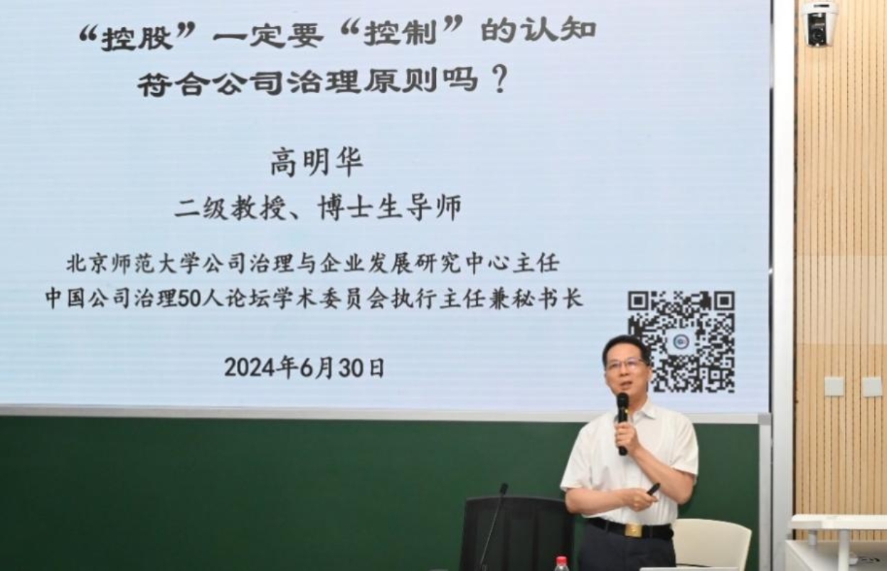Subsequently, the "Master" open class (the first lecture) was delivered by Professor Gao Minghua, BNUBS. With the theme "Is the perception that 'holding' must be 'controlling' consistent with corporate governance principles?", Professor Gao Minghua brought us a wonderful academic feast. He analyzed the key issues in corporate governance in simple terms, such as the rights and responsibilities of controlling shareholders, the importance of board independence, etc., and analyzed the risks and challenges that may be brought about by the control of major shareholders through practical cases. Professor Gao Minghua's explanation is simple and fascinating, which has triggered audiences thinking and heated discussion on the modernization reform of corporate governance.