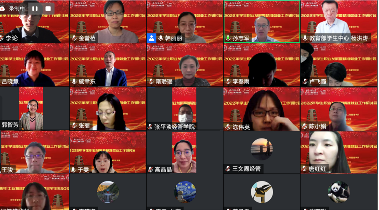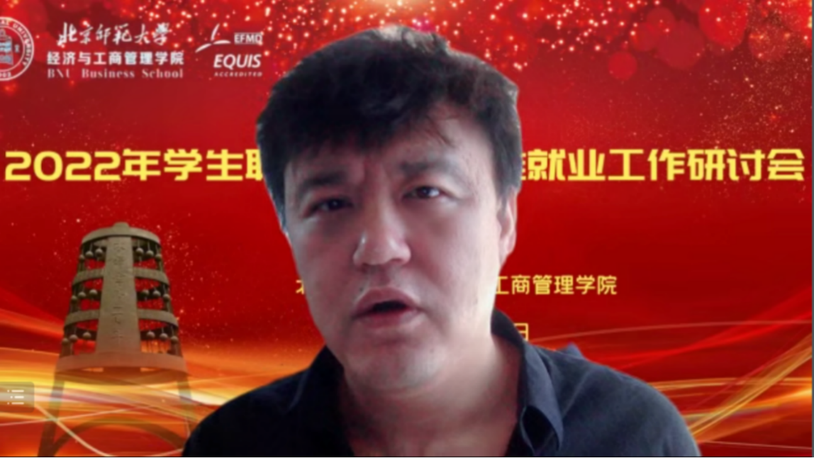 On Dec 14, BNUBS held a seminar on student career development and targeted employment in 2022 on the online platform. Yang Hongtao, Director of the Career Development Education Department of the Student Development Center of Ministry of Education; Sui Lulu, Director of the Student Work Department of the Party Committee of Beijing Normal University; Jin Leili, Deputy Director of the Student Career Guidance Center of Tsinghua University; Lu Feixia, Deputy Secretary of the Party Committee of the School of Economics of Zhejiang University; Li Chunyu, Director of the University Business Division of New Elite Career; Lv Xiaohui, Deputy Director of the Party Work Department of Beijing Normal University; and Beijing Normal University Guo Zhifang, director of the Career Development and Employment Guidance Center of the Student Work Department of the University Party Committee and other guests from inside and outside the university attended the meeting