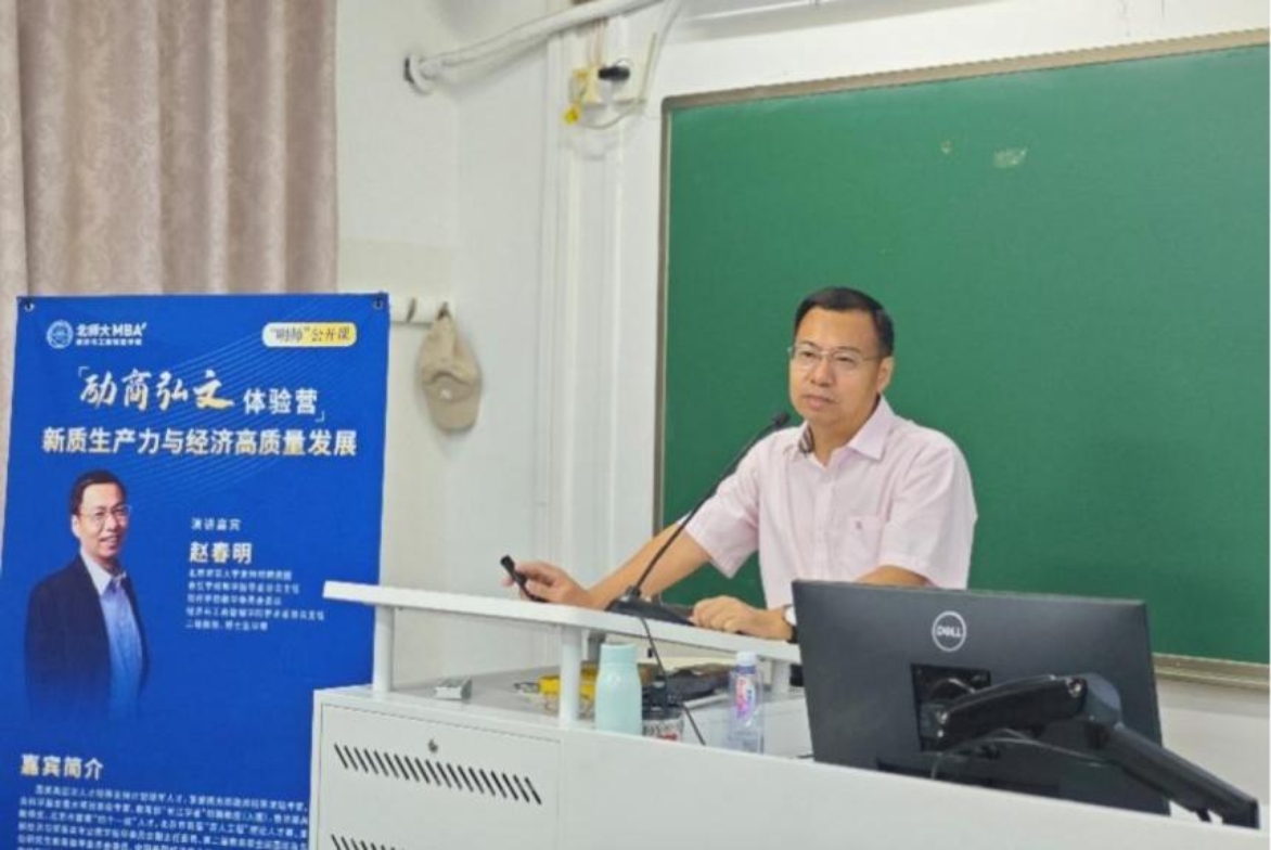 On July 14, the Master teacher’s opening class invited Zhao Chunming, a distinguished professor of Beijing Normal University, to be the keynote speaker. With the theme of "New Quality Productivity and High-quality Economic Development", Mr. Zhao revealed the internal logic and external performance of high-quality economic development with his profound academic skills and rich practical experience, which stimulated everyone's deep thinking about future economic development and further broadened the students' horizons.