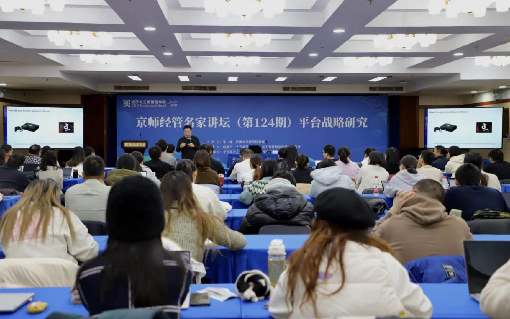 Professor Zhu Feng gave a wonderful speech entitled "Why Some Platforms Thrive and Others Don't". Based on the research results in recent years, Professor Zhu Feng introduced the strategic choices of internationally renowned platform enterprises such as TikTok, Google, Amazon, Uber and Airbnb, and analyzed the strategies from five aspects: platform network effect, multi-user strategy, network clustering, disintermediation risk and network bridging. The key factors that affect the success or failure of the platform strategy are explained in a simple way, and the successful experience of the sustainable and healthy development of the platform is summarized.Professor Zhu Feng's lecture organically combined cutting-edge theory with dynamic practice, and his explanation was lively and interesting, which left a deep impression on the teachers and students present.
