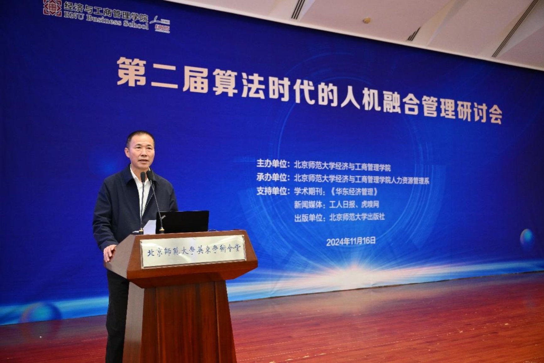 This seminar is the second "Algorithm Era and Human Computer Integration Management" seminar held at Beijing Normal University. As the initiator and organizer of the conference, BNUBS aims to provide a platform for information sharing and academic exchange among major universities. Through in-depth exchanges between academia and business, exploring new models of human-computer interaction under algorithmic management can help scholars and businesses in this field understand the academic frontier and have the opportunity for further communication. The successful convening of this conference is of great significance for the development of algorithm and interpersonal integration, as well as the construction of the Business Administration discipline at Beijing Normal University. This seminar has received support from relevant units such as East China Economic Management, Beijing Normal University Publishing Group, Workers' Daily, and Huxian.com.