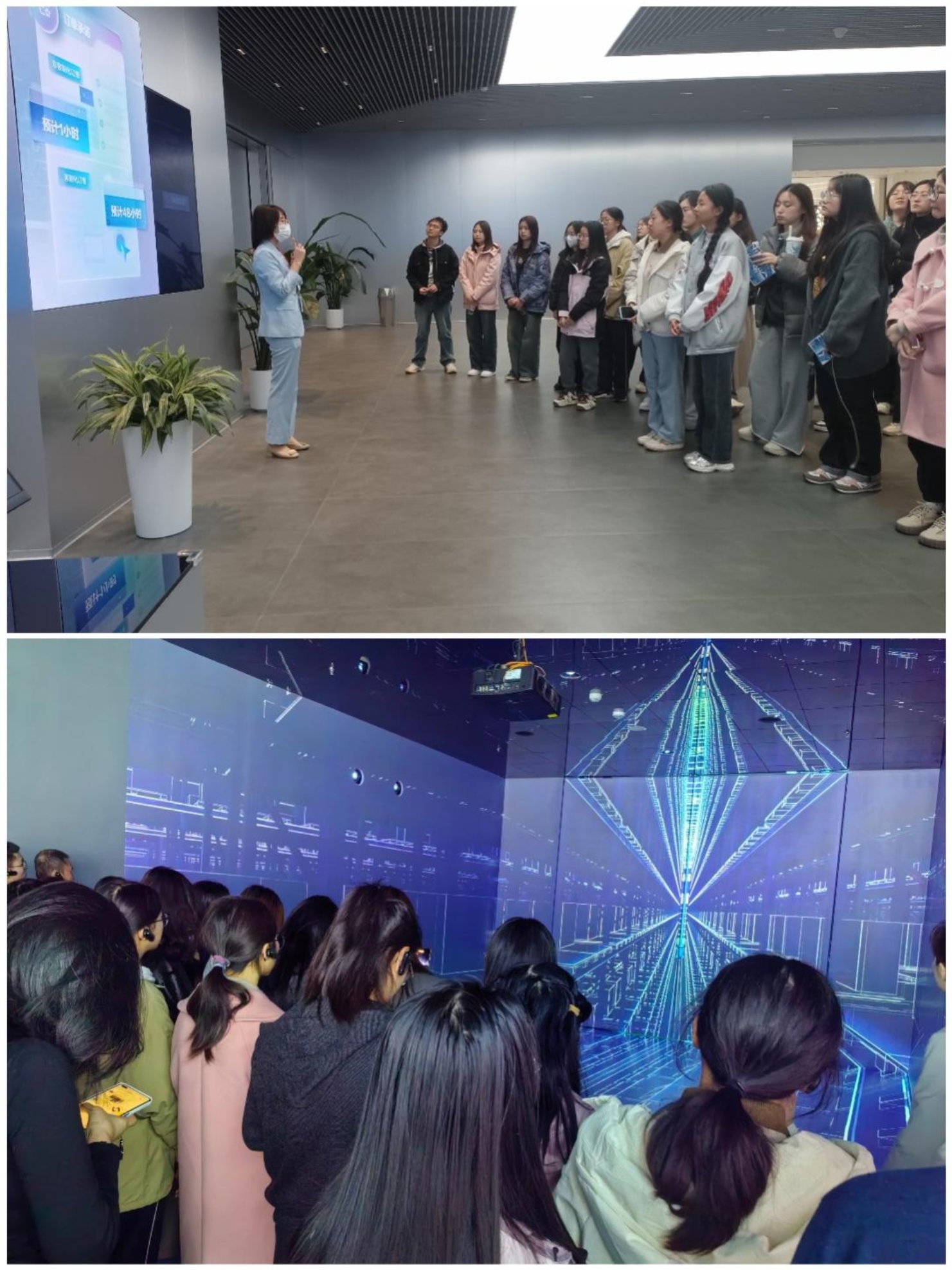 Finally, the students visited Lenovo's "From the Future to the Future" digital civilization art exhibition. The exhibition began with "Prelude to the Future" and responded to people's infinite curiosity about exploring the future in the era of communication with a series of sound art works, showcasing the arrival of the digital civilization era. The chapter of "Pentium Era" took the iteration of personal computers as the clue, leading the audience into a rapidly developing "Pentium Era", presenting the scene of rapid technological development. The chapter of "Digital Freshman" presented a colorful urban landscape at the beginning of the 21st century, with changing light and shadow allowing students to observe the hustle and bustle of urban people from a new perspective. In the midst of the leap, the students immediately fell into the current state of "instant everything" constructed by cutting-edge technology, and ultimately experienced a digital ocean composed of emerging technologies such as virtual reality and artificial intelligence. Through the 360 ° fully wrapped images of "Earth-2", they "encountered their future" selves while traveling.