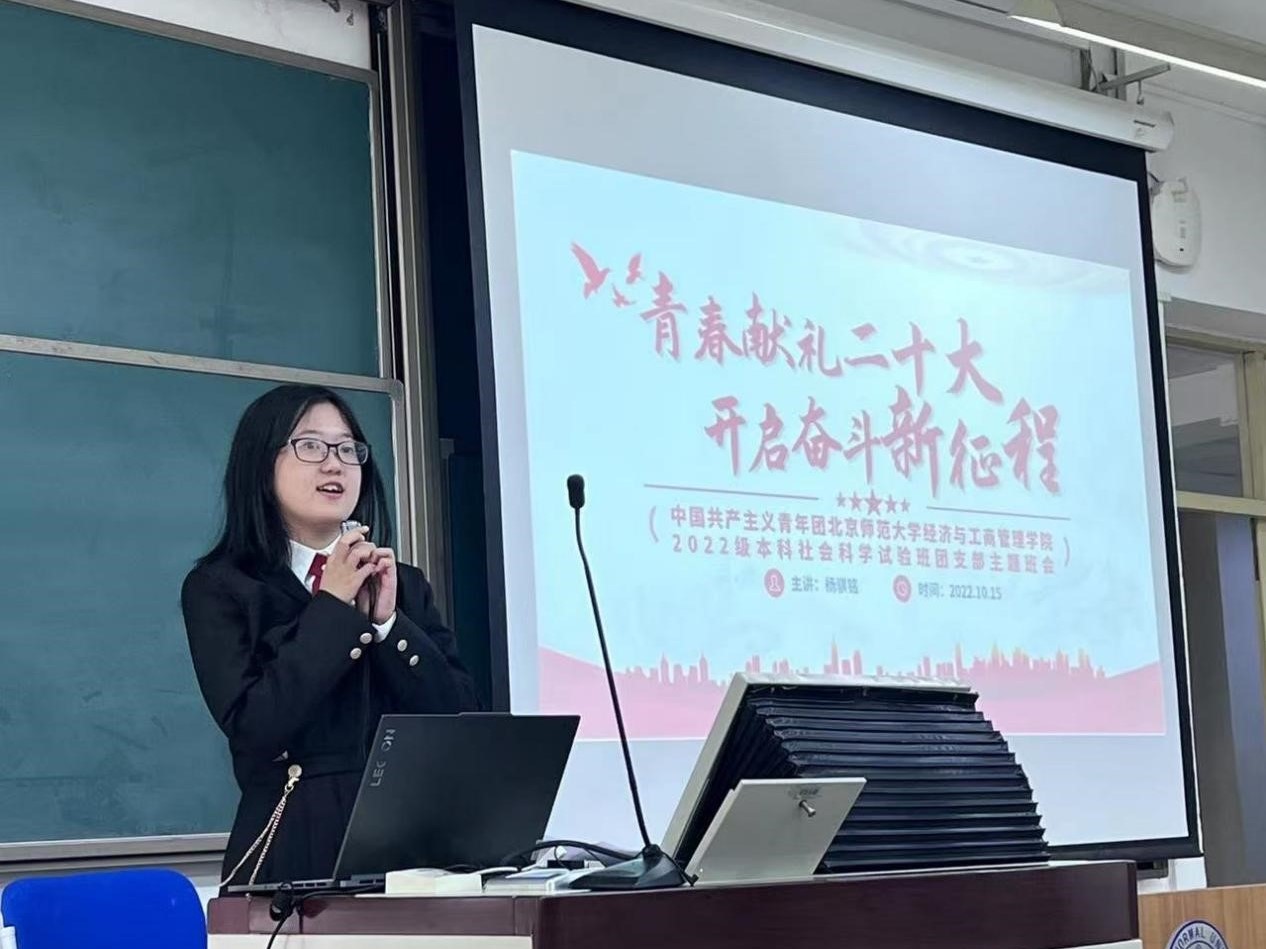 金秋十月,红浪激昂。2022年10月15日,潮人论坛 2022级社会科学试验团支部举办“青春献礼二十大,开启奋斗新征程”主题活动,以崭新的面貌喜迎党的二十大胜利召开。本次活动由团支书杨骐铭主持,共有64名同学线下参加,10名同学线上参加。