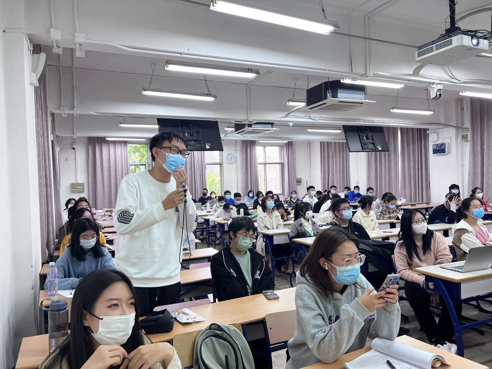 团支部精心设计了“红歌击鼓传花”活动,通过小游戏的方式引领大家传唱红歌,让同学们从中感受红色文化的魅力。《没有共产党就没有新中国》、《我们走在大路上》、《万疆》、《我和我的祖国》四首歌曲的旋律一出,便引起了同学们的共鸣。同学们情不自禁地跟唱,唱出的是中国人心中满满的自豪感和喜悦感。