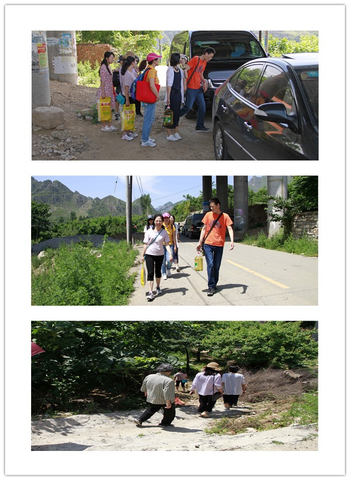 3个小时的车程,穿过涞水境内的崇山峻岭,车终于在位于河北省涞水县虎过庄的一个半山腰的公路边停了下来。太阳火辣辣的照着大地,天气十分的炎热,在向导张杰老师引领下,顺着一条羊肠小道来到了老红军老党员的住处。当我们站在那个极其简陋又充满生机的小院里,感受到了一位90岁老人简朴的生活气息和宁静的生活情怀。在这个收拾得整整齐齐的小院里,篱笆旁种着黄瓜,树下是绿油油的青菜,空地也被打扫得干干净净,老人的房子位于小院中间,一棵硕大的核桃树站立在房子前的空地上,伸展的枝条将空地上空遮挡得严严实实,为老人撑起了一片荫凉。空地上摆着一张小茶几和几个板凳,茶几上摆着一个茶壶和四五个茶杯,茶杯形状颜色各异,可见老人的生活多么简朴。穿着一身军装的陈爷爷见到我们,就要给我们沏茶、切西瓜。西瓜是特意买的,为了给我们降降暑,心中不由的涌出一份清凉的暖意。
