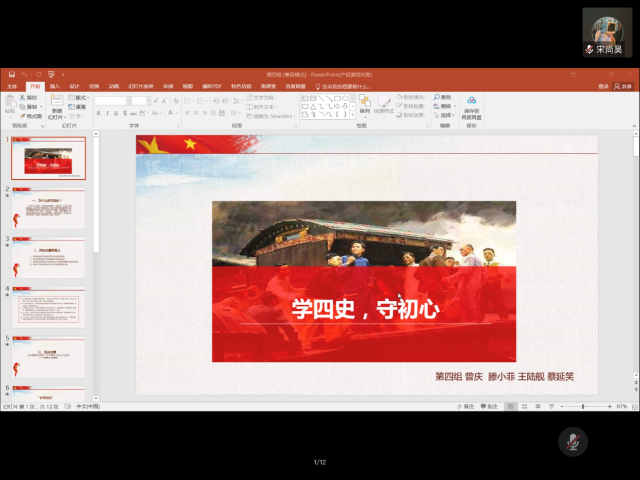 在活动现场,各个小组的代表展示了组员在学习过程中找到的相关材料,通过讲故事,读理论、看视频、做专题讲座等做分享,让各位党员同学深入地了解了党和国家数十年来的发展与变迁。