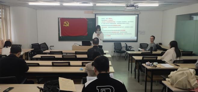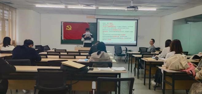 首先,党支部全体成员起立,合唱《国际歌》。支部书记袁胜轩同志清点会议出席人数,并介绍各发展对象的基本情况。发展对象在党旗下宣读《入党志愿书》,向党组织汇报个人对党的认识、入党动机,并进行了履历梳理和自我剖析。接着,入党介绍人介绍发展对象的有关情况,并对其能否入党表明意见。支部党员袁璐璐同志宣读发展对象的政审报告及公示结果。基于以上信息,支部成员充分讨论发展对象的优缺点,并帮助其增强自我认识,明确努力方向。