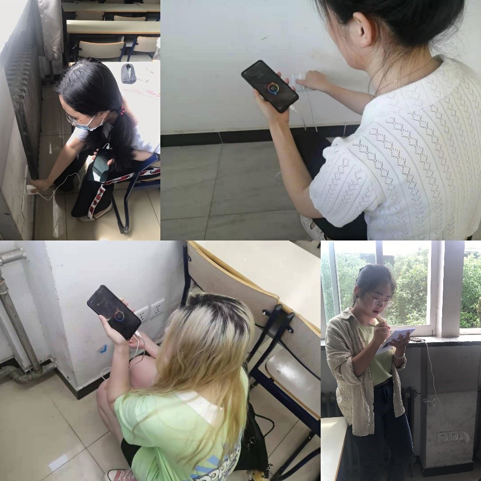 5月30日晚上6点,四位支书首先来到教九楼实地考察,在查看了几个屋子电源分布情况之后,几人讨论了关于电源位置和损坏程度如何可视化的问题,最终达成共识,决定采用平面图手绘点位做标记的方式直观展示电源情况。接着,一行人又前往教室较密集、类型也较多的教二楼,遇到了新的问题:教室的大小不一,如果仅仅是标明电源位置并不能充分展示该教室的电源密度。基于这种情况,四人又探讨出可行方案,即在平面图标明座位数,这样既能观察到电源情况,也能提前判断教室大小,给同学们提供更多便利。
